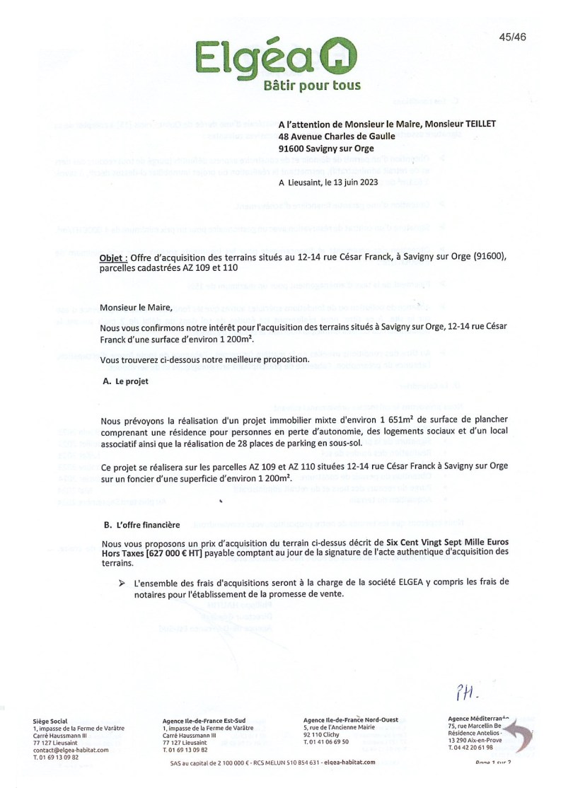 De vous à moi, je n’aime pas la manière dont Elgéa formalise ses conditions, parce que Savigny n’est pas sa pute. On peut très bien aller voir ailleurs si tu commences à nous emmerder !