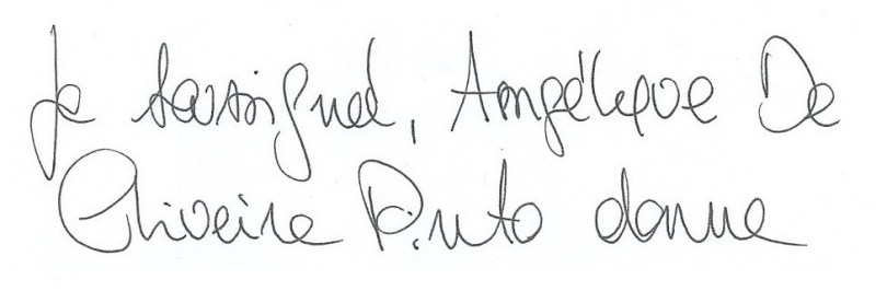Et puis, devinez quoi, sur l’attestation de Angélique DE OLIVEIRA PINTO, elle est dactylographiée !!! Comme cela, on ne peut pas savoir quelle est son écriture !
