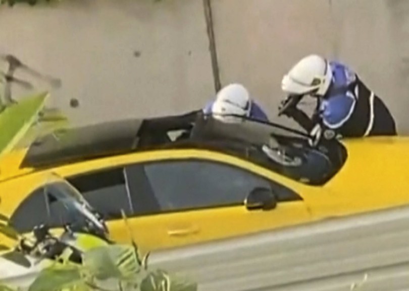deux policiers veulent arrêter et contrôler les passagers d’un véhicule en fuite depuis 20 minutes.