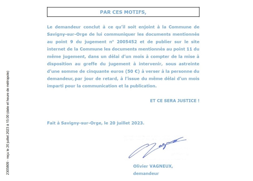 Problème numéro 1 : le jugement précédent disait de ne me communiquer qu’une partie des pièces. Ce serait bien la première fois que la Commune ferait plus que le maximum qu’on lui demande !