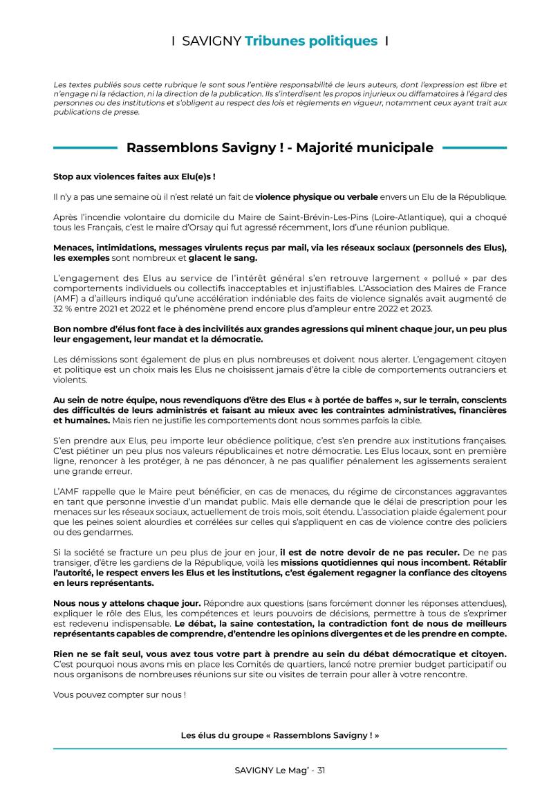 La majorité municipale d’Alexis TEILLET est contre les violences faites aux élus…