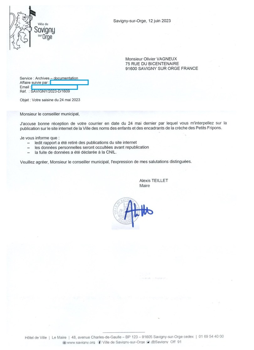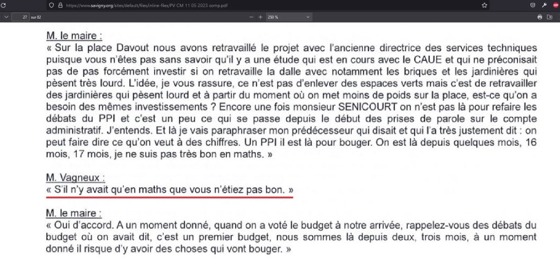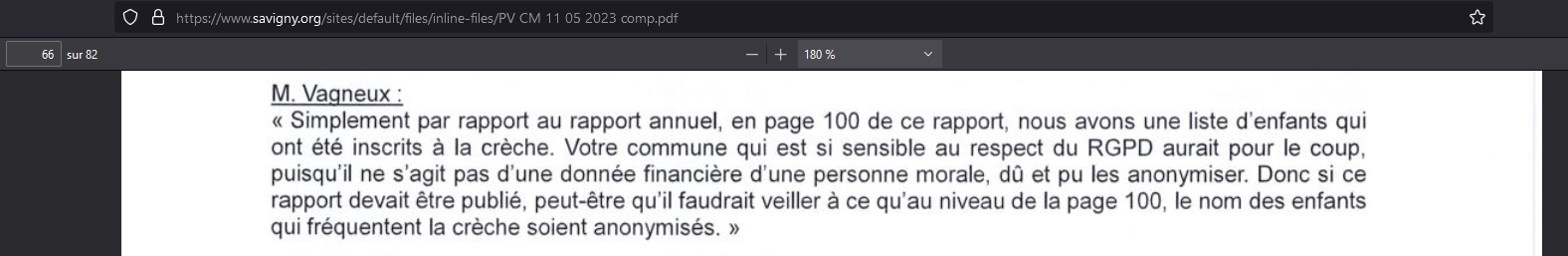Lors du conseil municipal du 11 mai 2023, je leur dis bien de ne pas publier les pages d’un rapport qui contient les noms des enfants fréquentant une crèche.