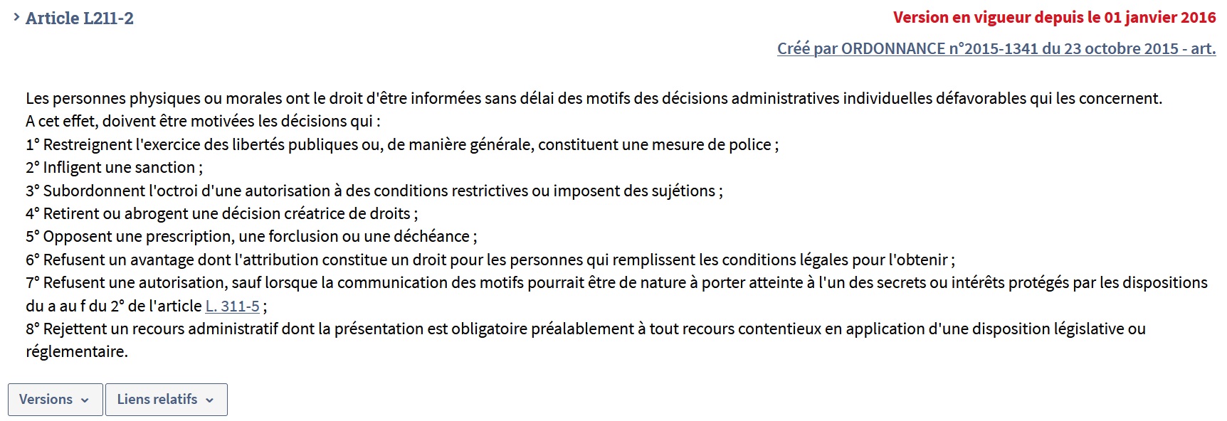1°) La décision opposée à Élan n’est pas suffisamment motivée en droit et en fait, en méconnaissance des dispositions de l’article L. 211-2-6° du code des relations entre le public et l’administration (= erreur de droit).