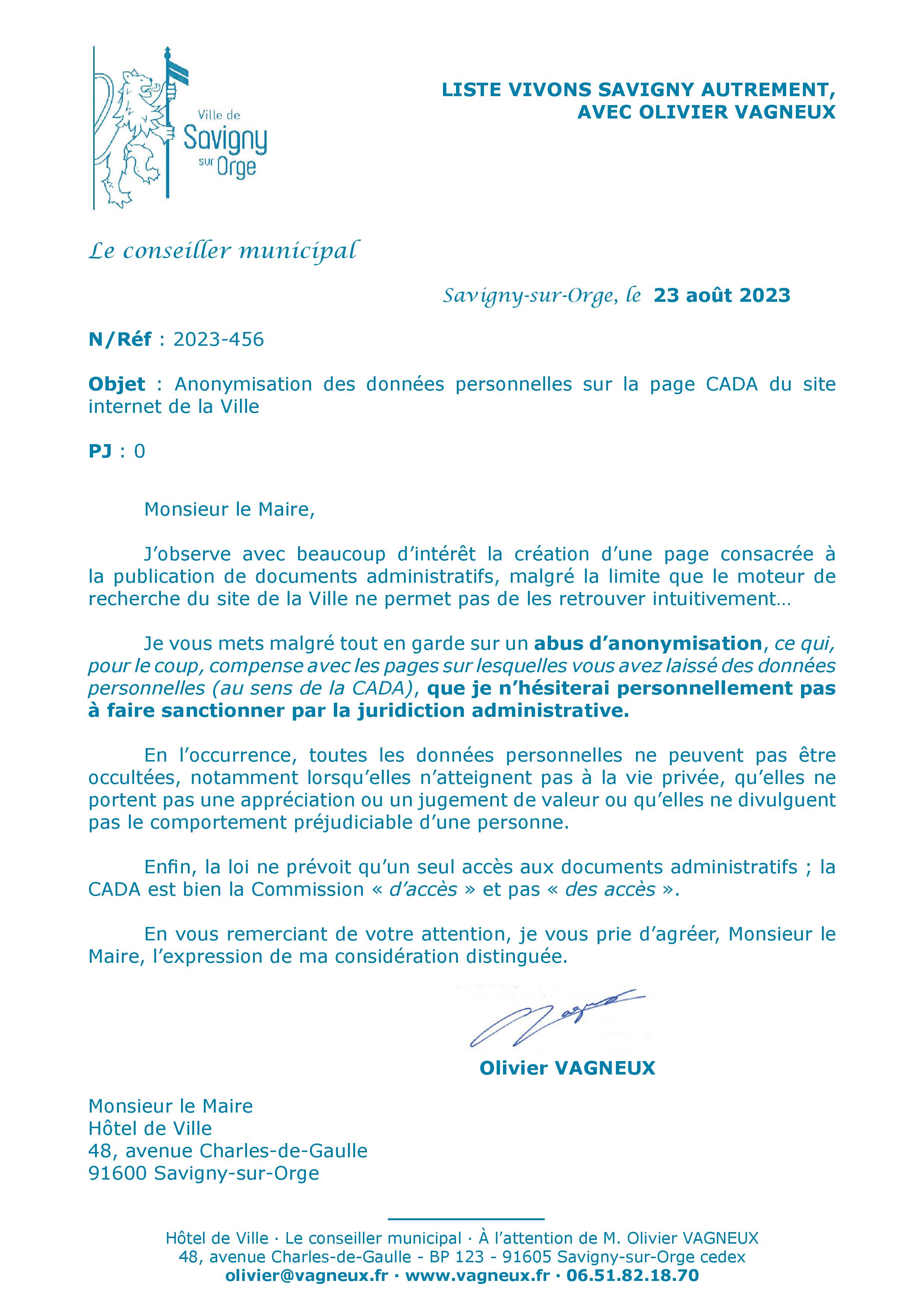 – me demande d’anonymiser ses données personnelles, alors qu’avec la déléguée à la protection des données, elle est la seule à ne pas avoir de vie privée en mairie…