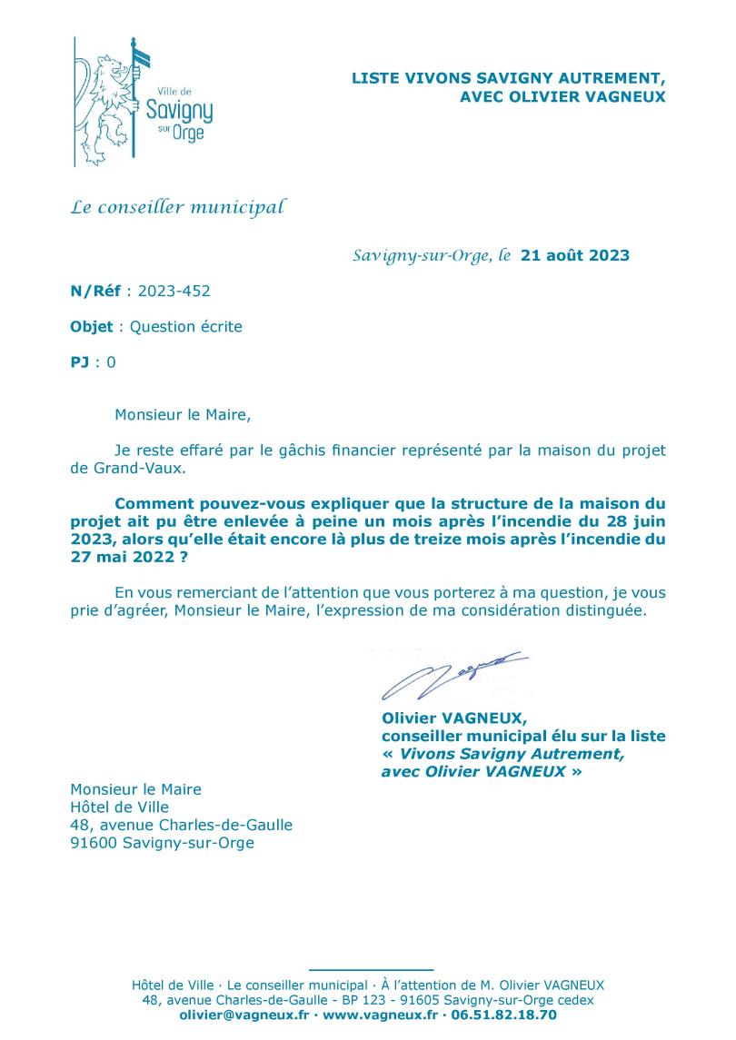 Le 5 juin 2023, soit un an après l’incendie de la maison du projet du 27 mai 2022 devenue dès lors inutilisable, j’écrivais à TEILLET en lui demandant quand est-ce qu’on allait enfin la retirer.