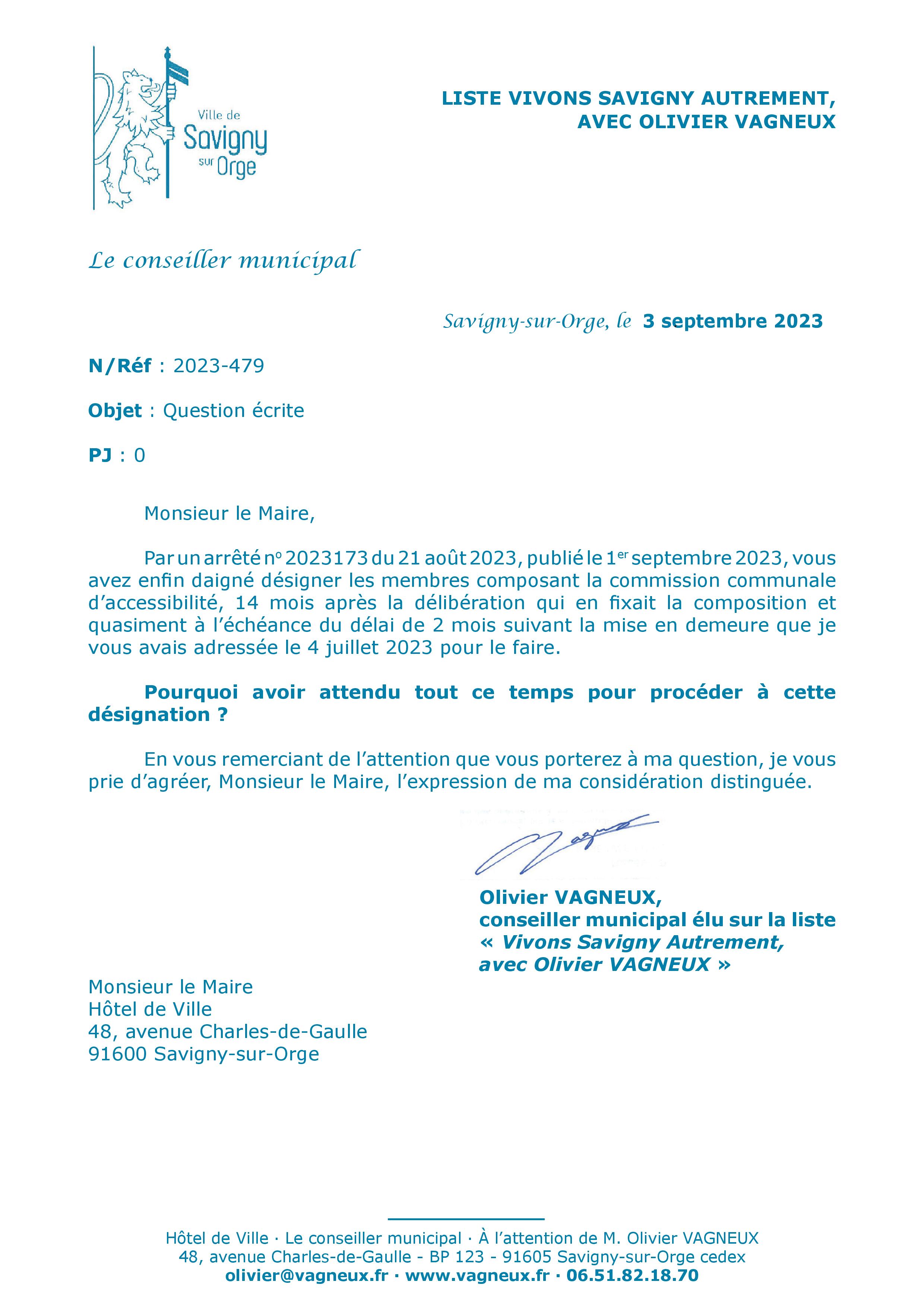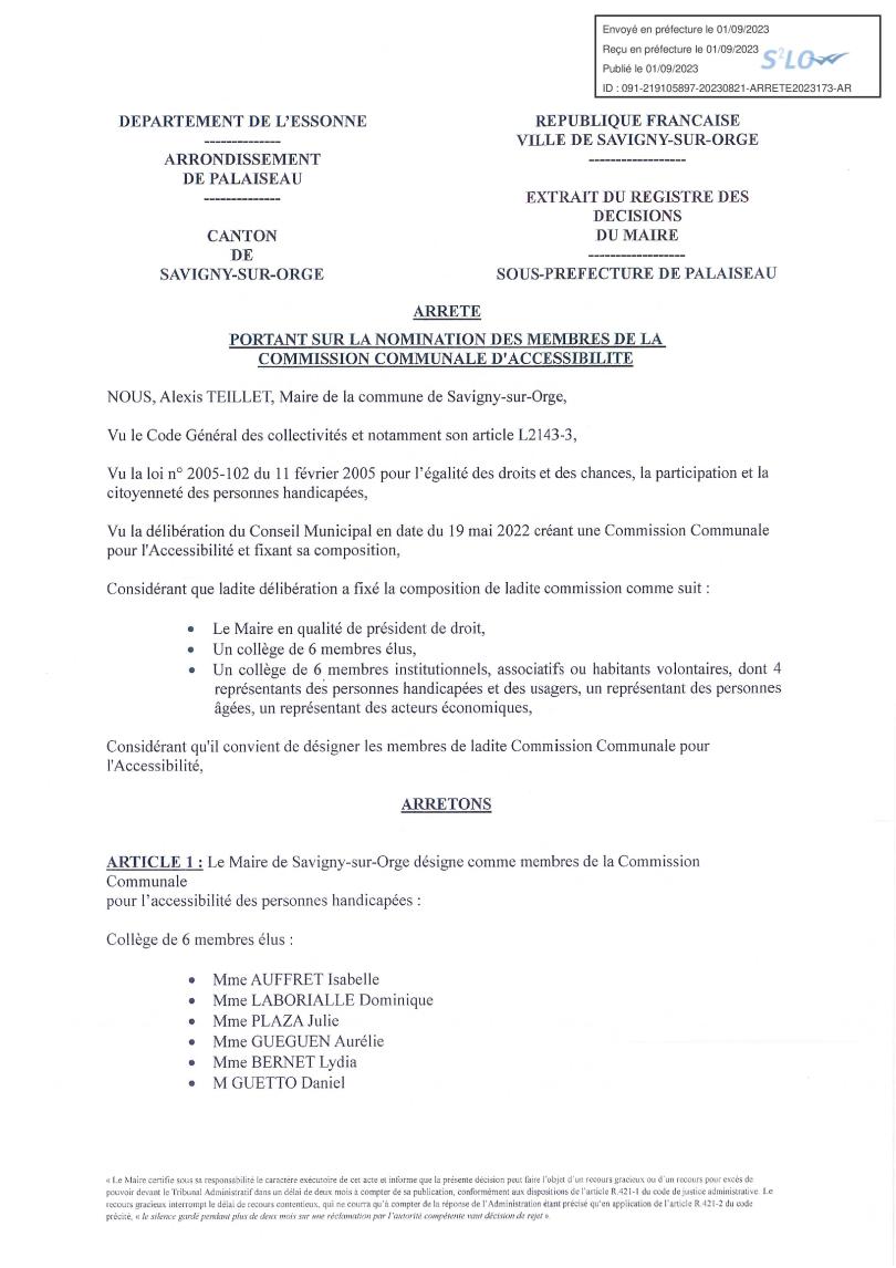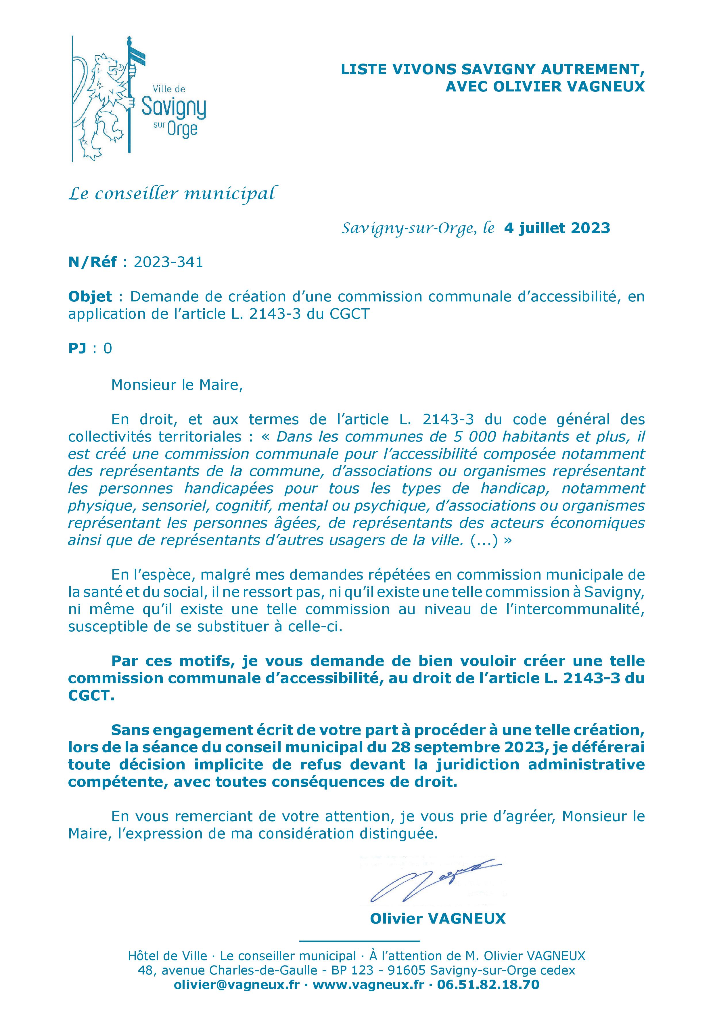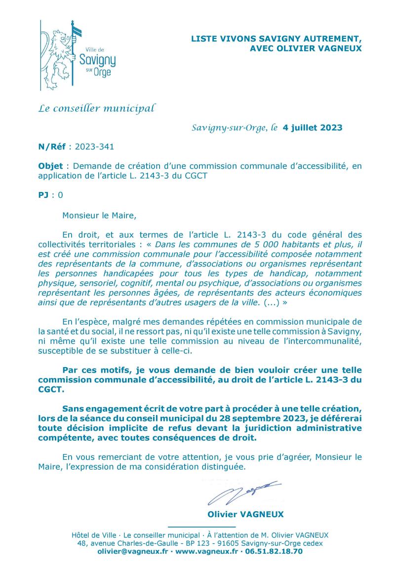 Il pourrait aussi y avoir un débat sur le lien de l’association Le jour de Madame Savigny ou même de Dynamic Savigny avec le handicap et l’accessibilité.