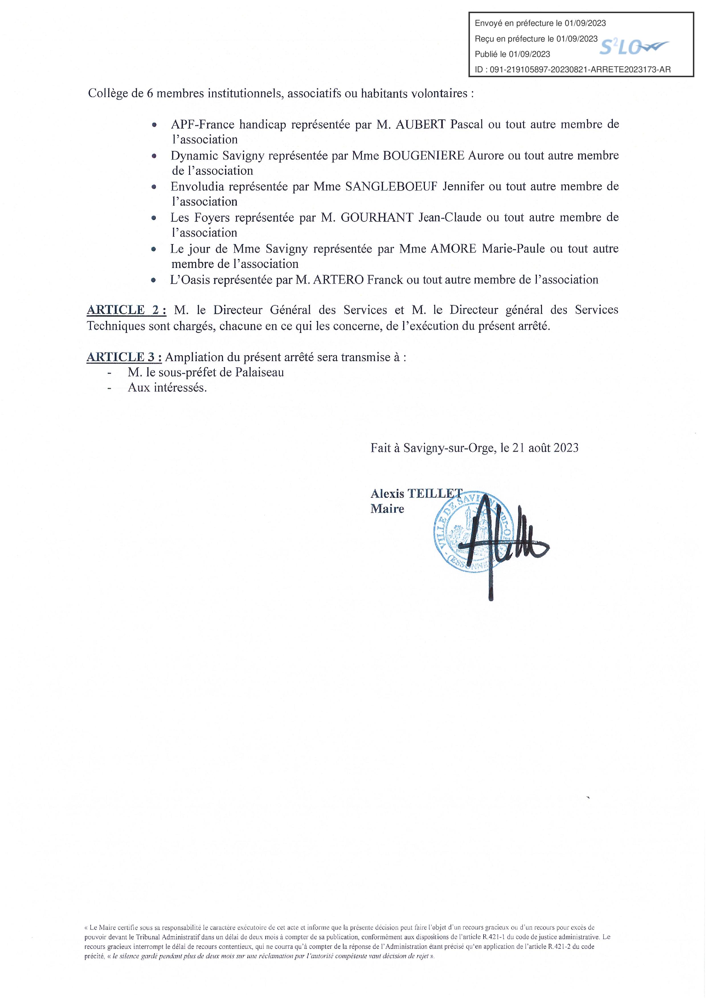 Bref, un an après, TEILLET n’avait toujours pas pris d’arrêté pour en fixer la composition.