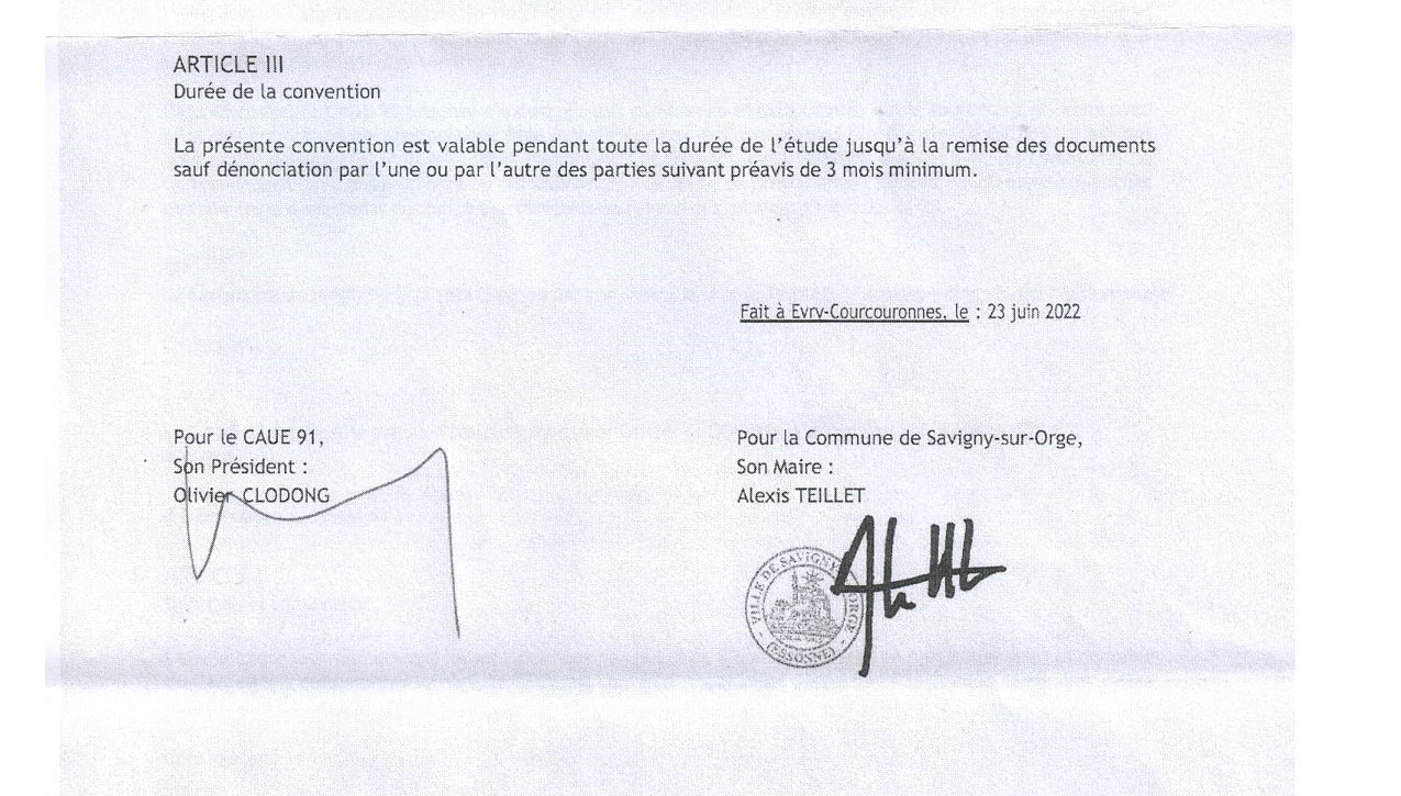 2. Par une délibération no 15/147 du 23 juin 2022, examinée à partir du 24 juin 2022 à 00 h 05, le maire de Savigny-sur-Orge a été habilité à signer une adhésion et une convention d’objectifs avec le Conseil d’architecture, d’urbanisme et d’environnement de l’Essonne, ou CAUE 91 (Production no 1).