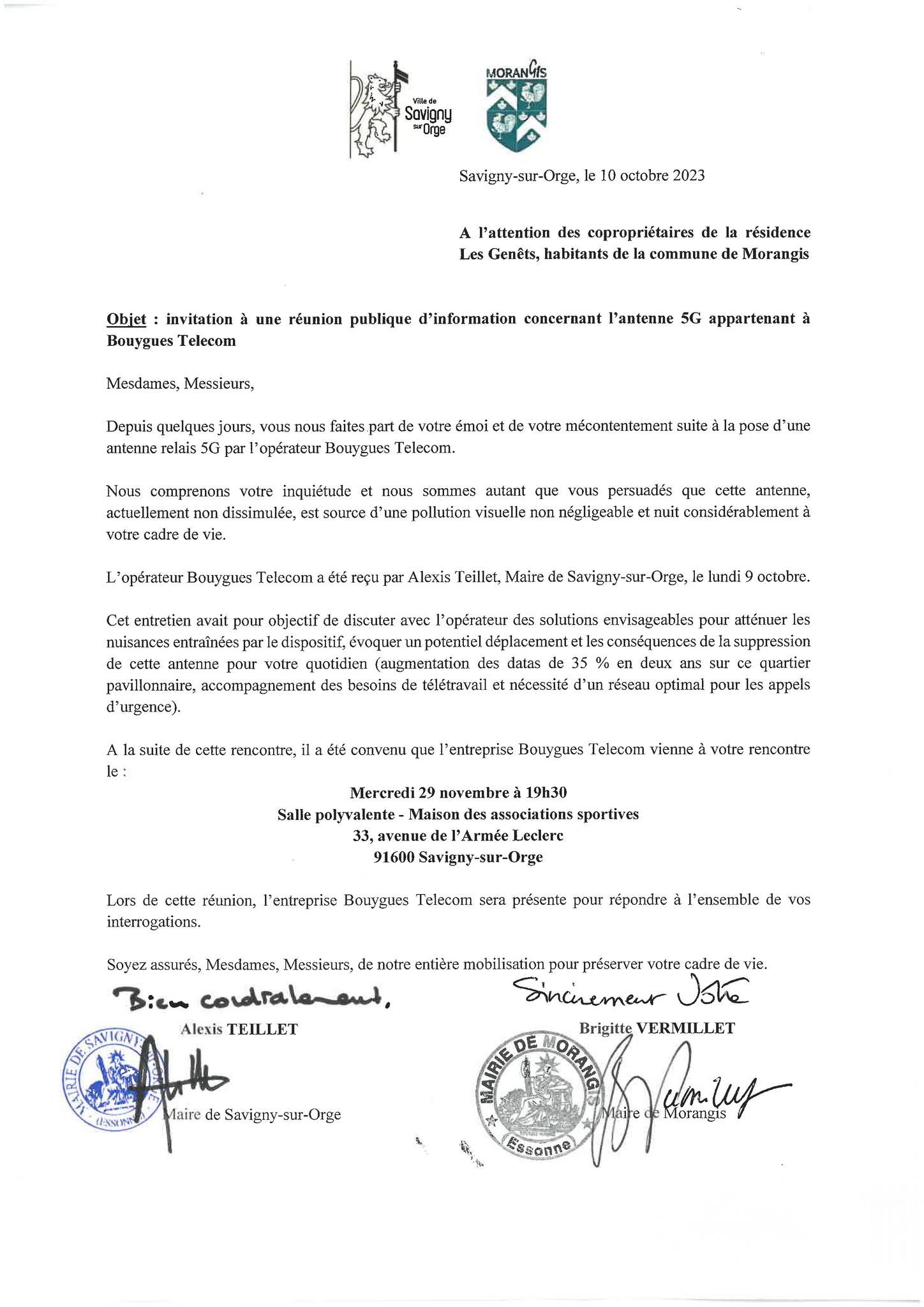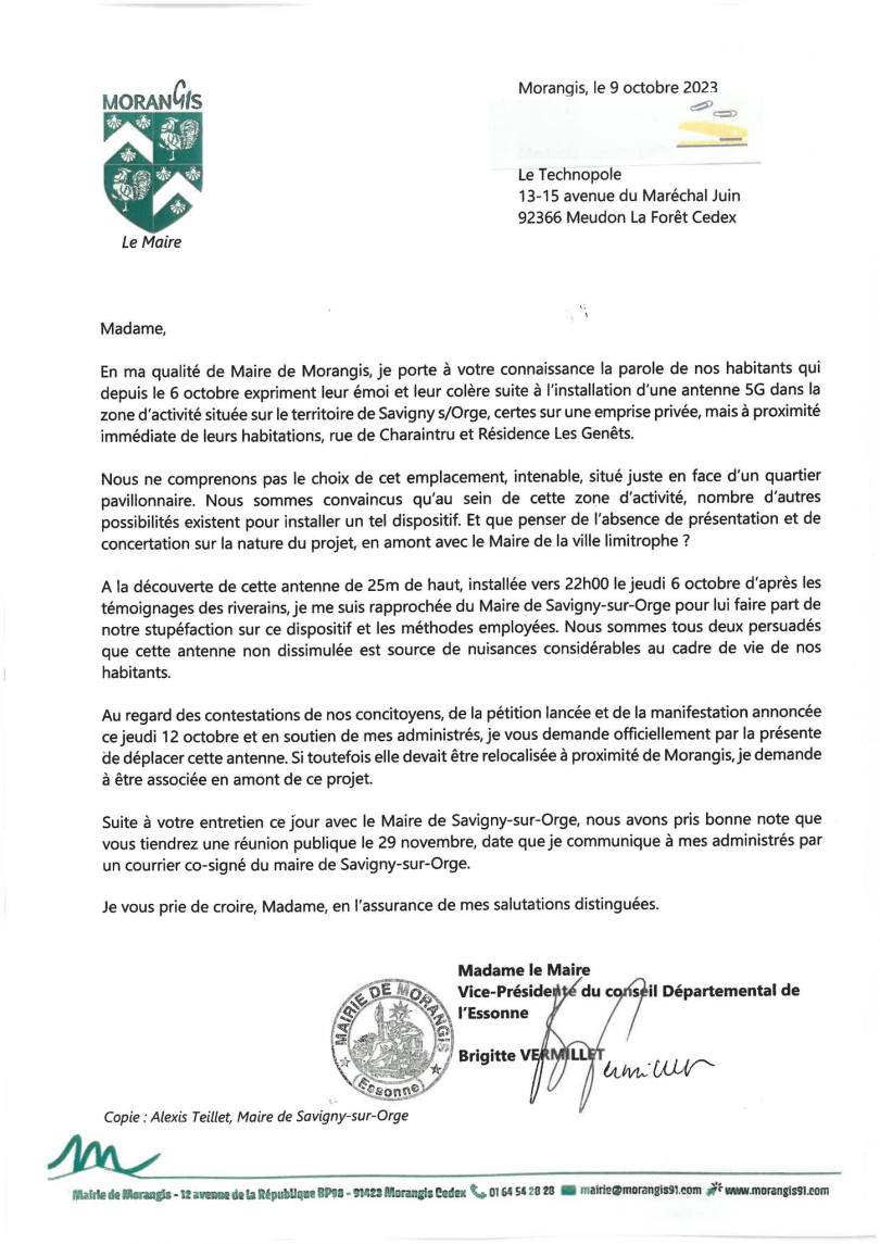 Mais qui peut croire que VERMILLET et TEILLET ne s’étaient pas entendus sur l’installation d’une antenne 5 G à la limite de Savigny et de Morangis ?
