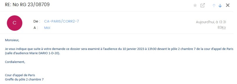 Il restera cependant encore un appel à juger, que j’ai déposé ce lundi 8 janvier 2024, contre le jugement du vendredi 5 janvier 2024.