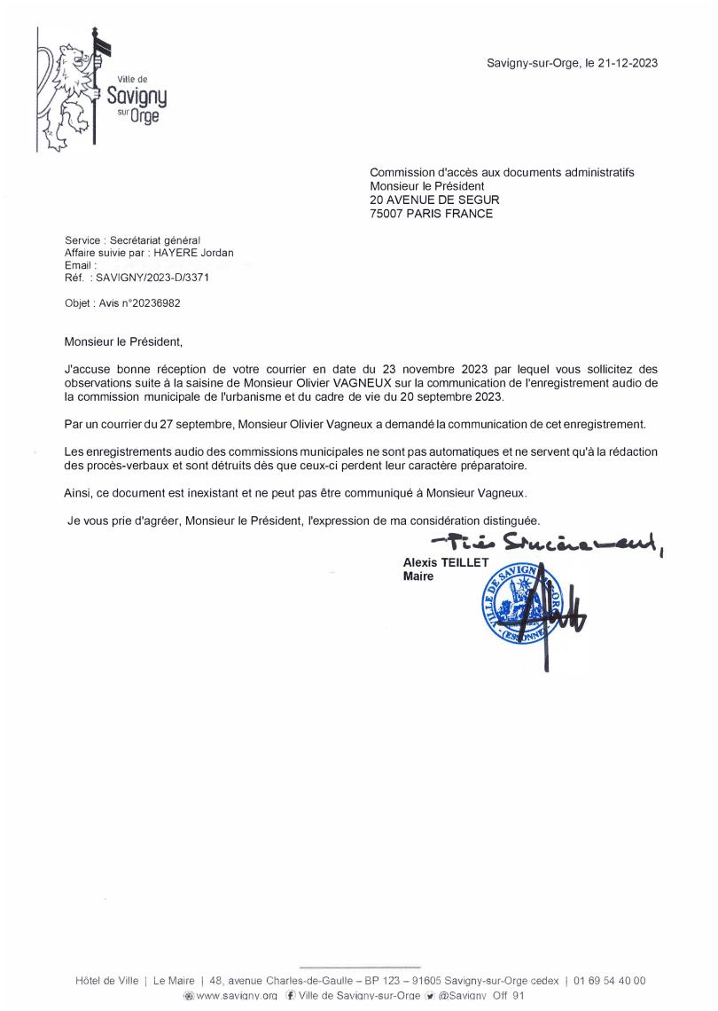 Et ainsi, il écrit au président de la Commission d’accès aux documents administratifs (CADA), le 22 décembre 2023, qu’il ne procède pas systématiquement aux enregistrements des commissions… Probablement quand il n’a pas envie qu’on rédige de procès-verbal de commission, pour ne pas qu’on garde de traces de certaines discussions qu’il devine houleuses à l’avance…
