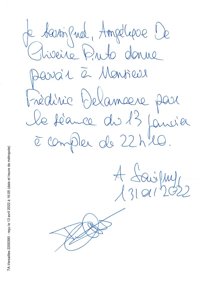 Parce que PINTO est quand même allée jusqu’à témoigner, devant le Conseil d’État, que c’était bien elle qui avait écrit son pouvoir du 13 janvier 2022…