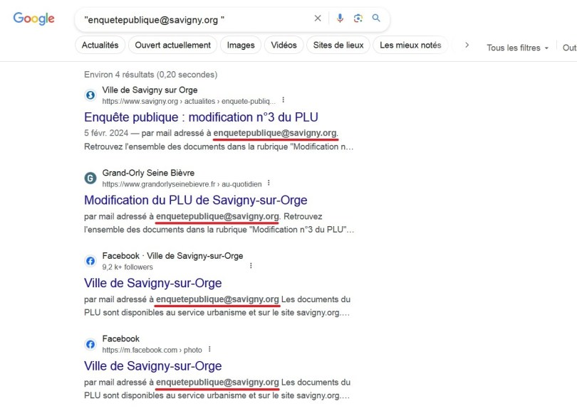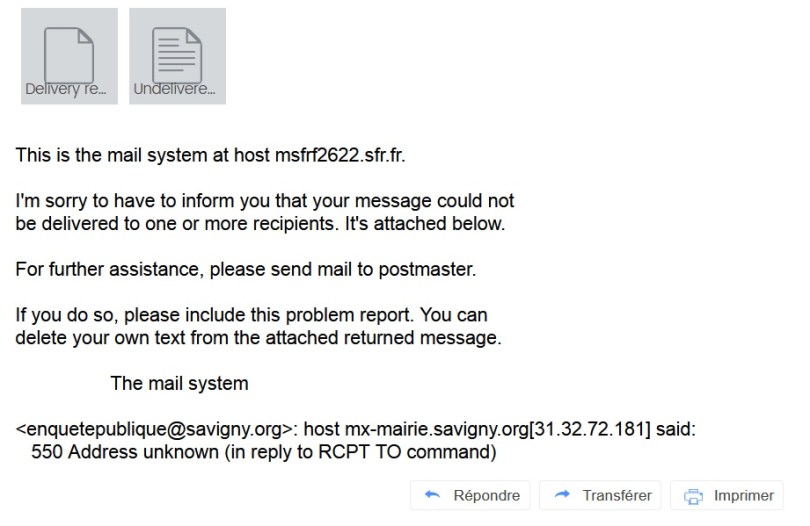 Bah, du coup, quand tu écris à « enquetepublique@savigny.org », ça ne fonctionne pas…