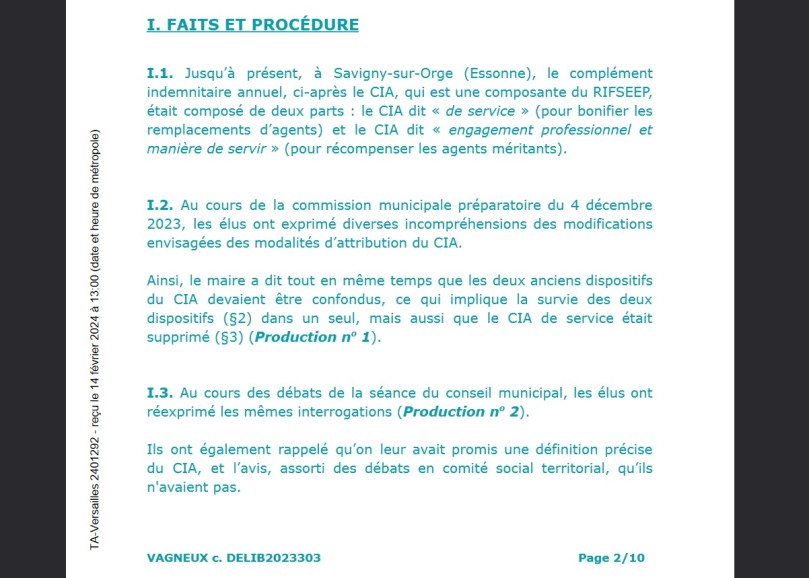 J’ai donc demandé au juge administratif d’annuler ces nouvelles modalités d’attribution du CIA, parce que moi, je défends vraiment les intérêts de tous les agents ; ainsi qu’un service public qui récompense l’efficicence au lieu de la servilité (dont on voit où elle conduit Savigny, au vu de l’état de la Ville).
