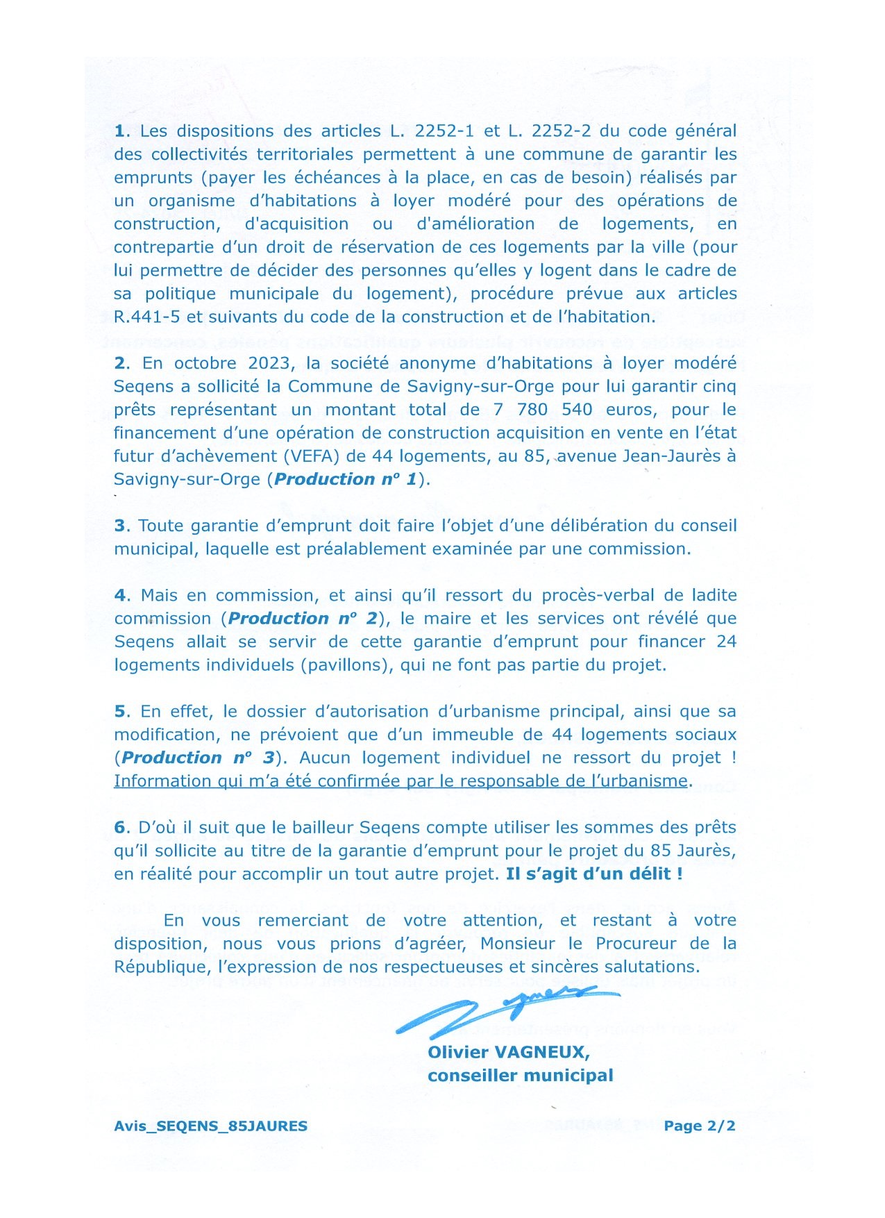 Et j’ai tout bien dénoncé proprement au procureur de la République, pour le délit financier occulte, que constitue le fait de demander sciemment une garantie d’emprunt pour un objet, tout en connaissant que l’on compte en fait s’en servir pour un autre objet.
