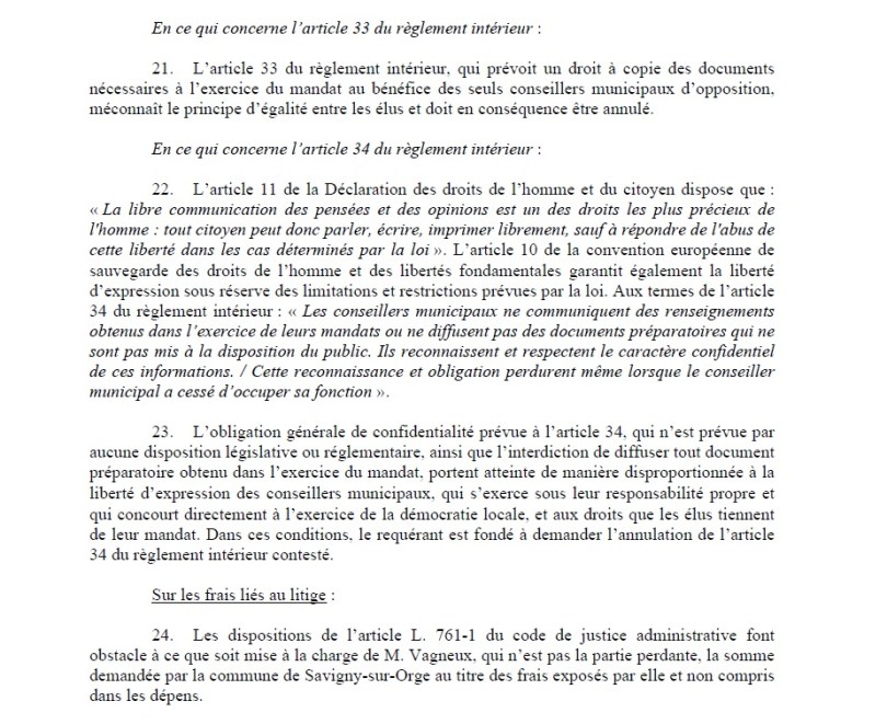 Petite déception néanmoins car je demandais l’annulation de deux autres types d’articles, mais le juge administratif a suivi un raisonnement inversé pour justifier de ne pas faire droit à ma demande…