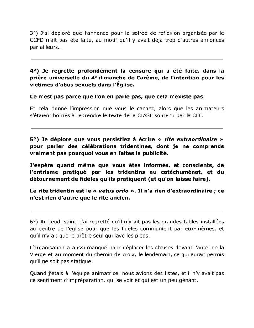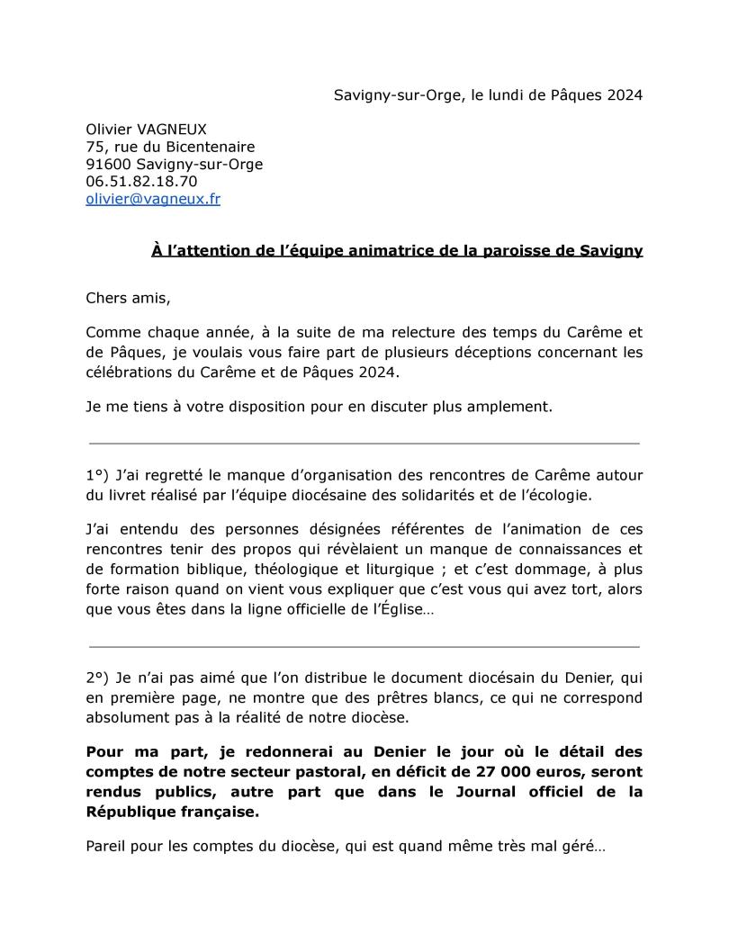 Je voulais vous faire part de plusieurs déceptions concernant les célébrations du Carême et de Pâques 2024.