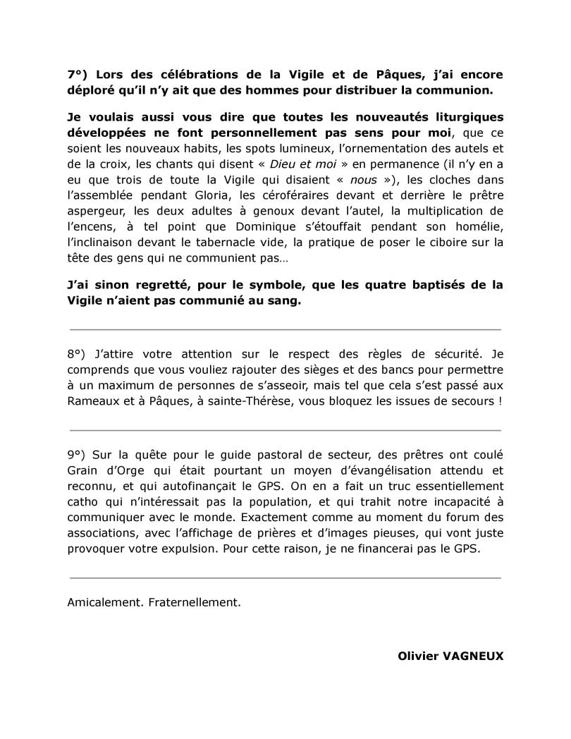 4°) Je regrette profondément la censure qui a été faite, dans la prière universelle, de l’intention pour les victimes d’abus sexuels dans l’Église.