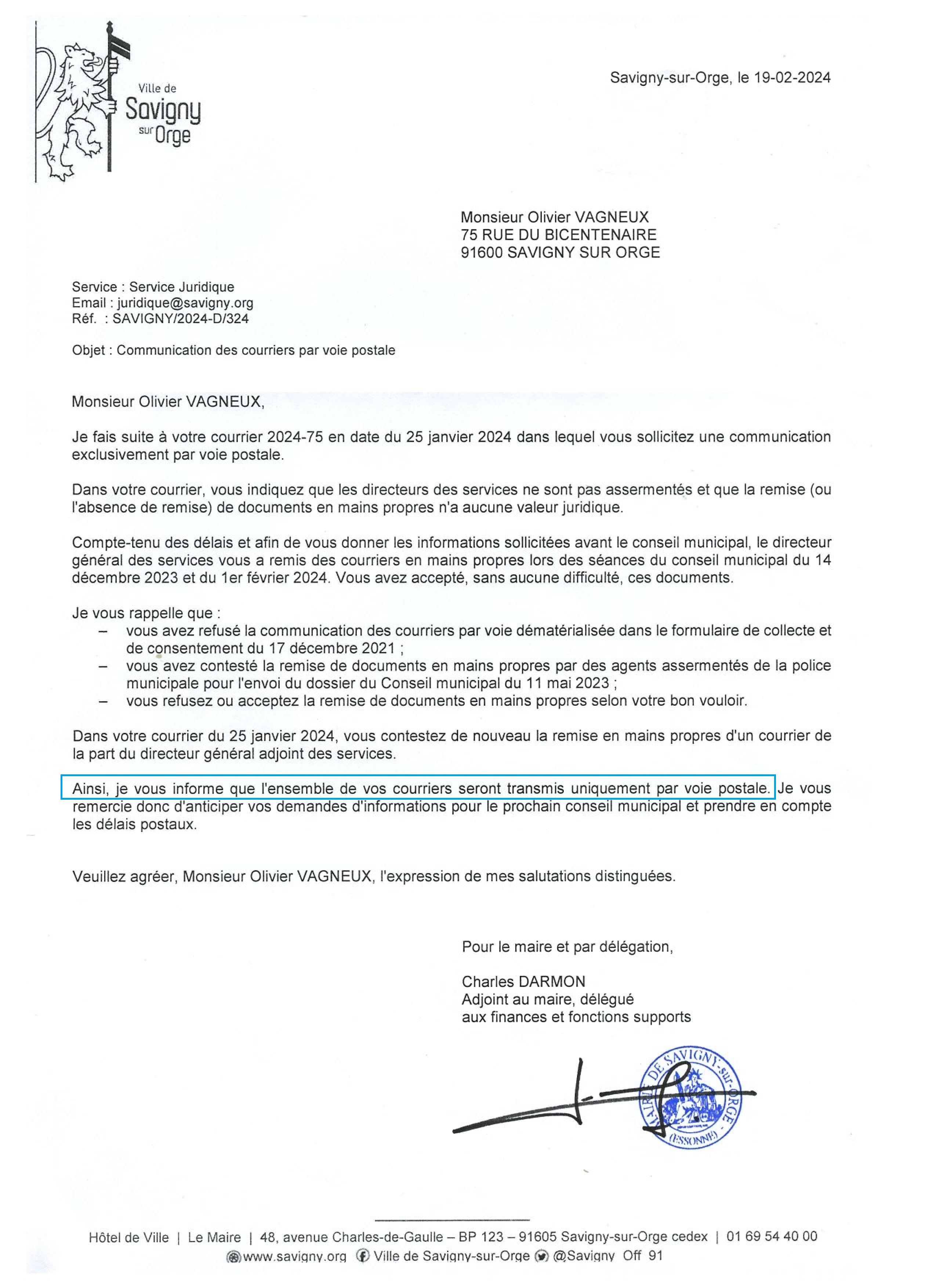 Bref, il s’est interdit de communiquer avec moi autrement que par courrier postal.