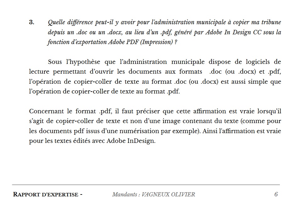 Un expert informatique, agréé près les tribunaux, et que je citerai comme témoin, avec son accord, leur a certifié que ma tribune n’était pas au format texte.