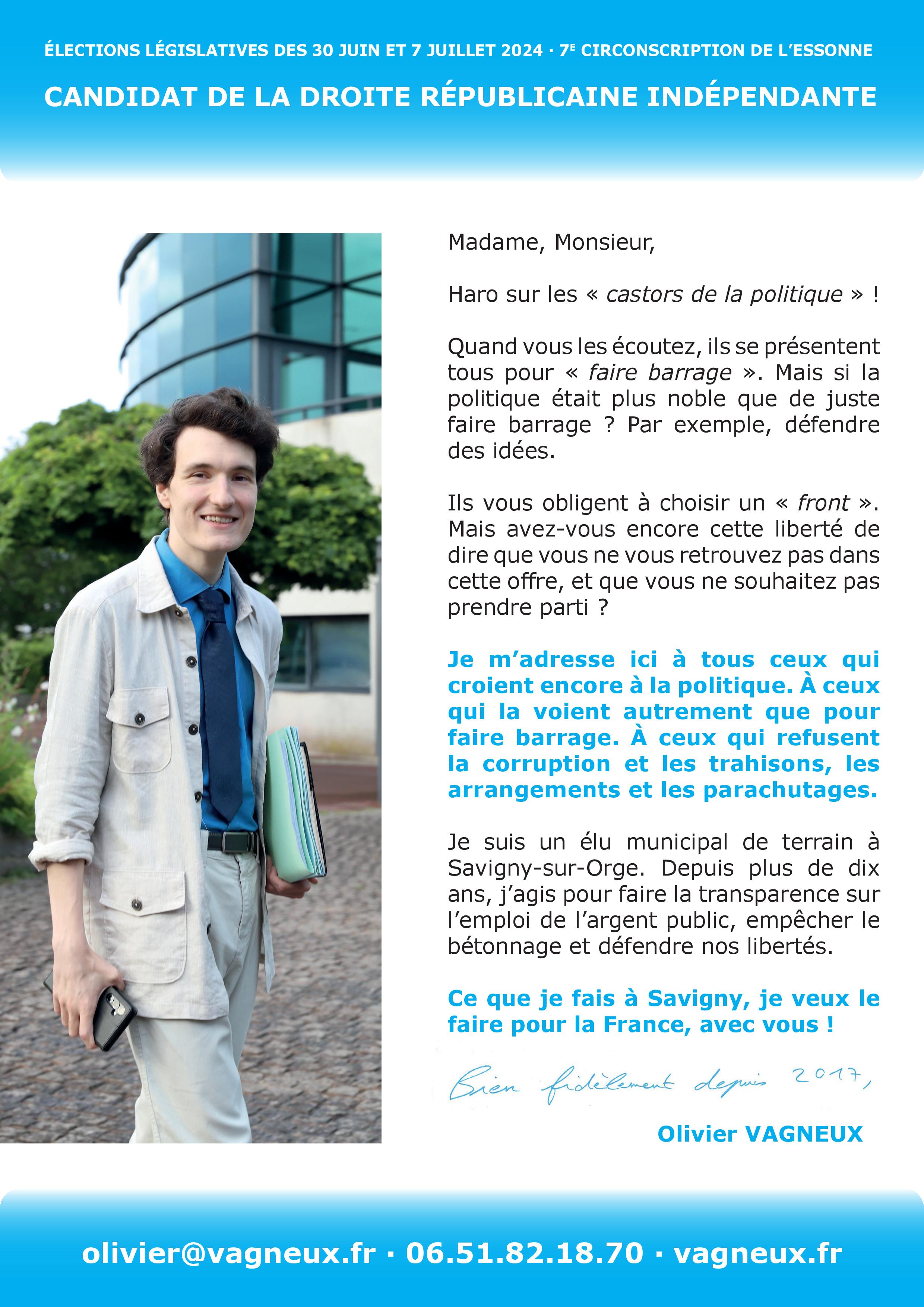 Dimanche 30 juin, votez pour une droite républicaine vraiment indépendante*.
