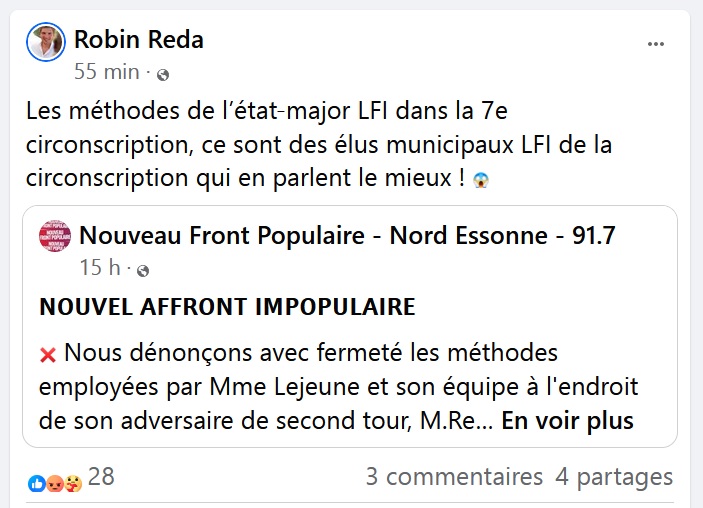 Contactée, l’équipe de campagne de Claire LEJEUNE réfute la véracité de ce post.