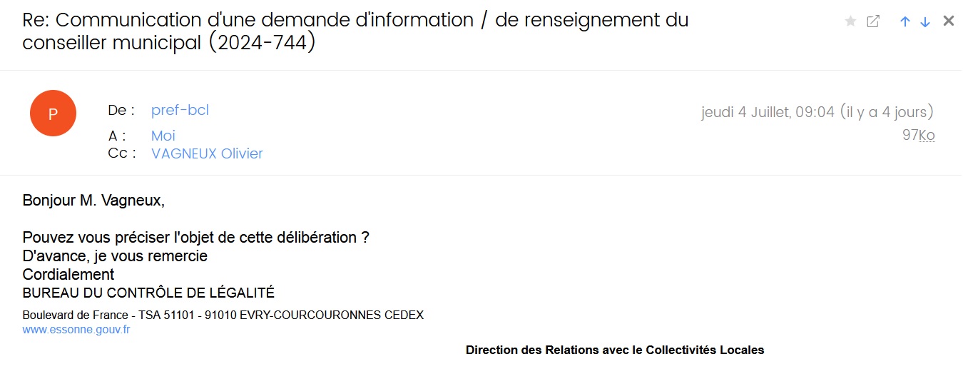 Première intuition : faire appel à son bon sens ; étonnant, n’est-il pas, que la Commune ait attendu deux mois pour transmettre pour la première fois cette délibération au contrôle de légalité, quand elle a transmis les autres dans la huitaine ?