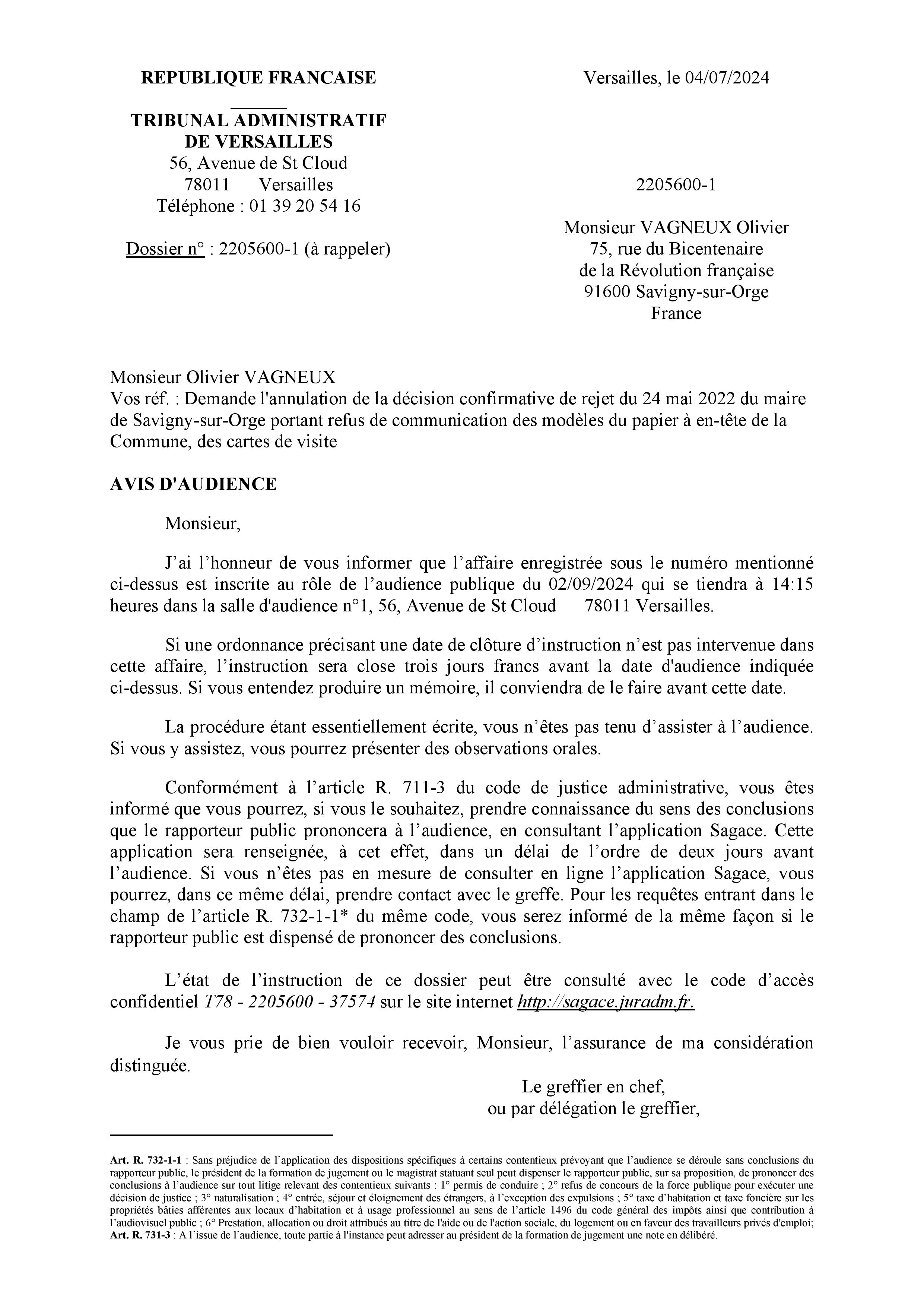 Ensuite, et comme je suis un sale gosse, je me suis permis d’en informer la magistrate du tribunal administratif qui doit statuer sur l’affaire.