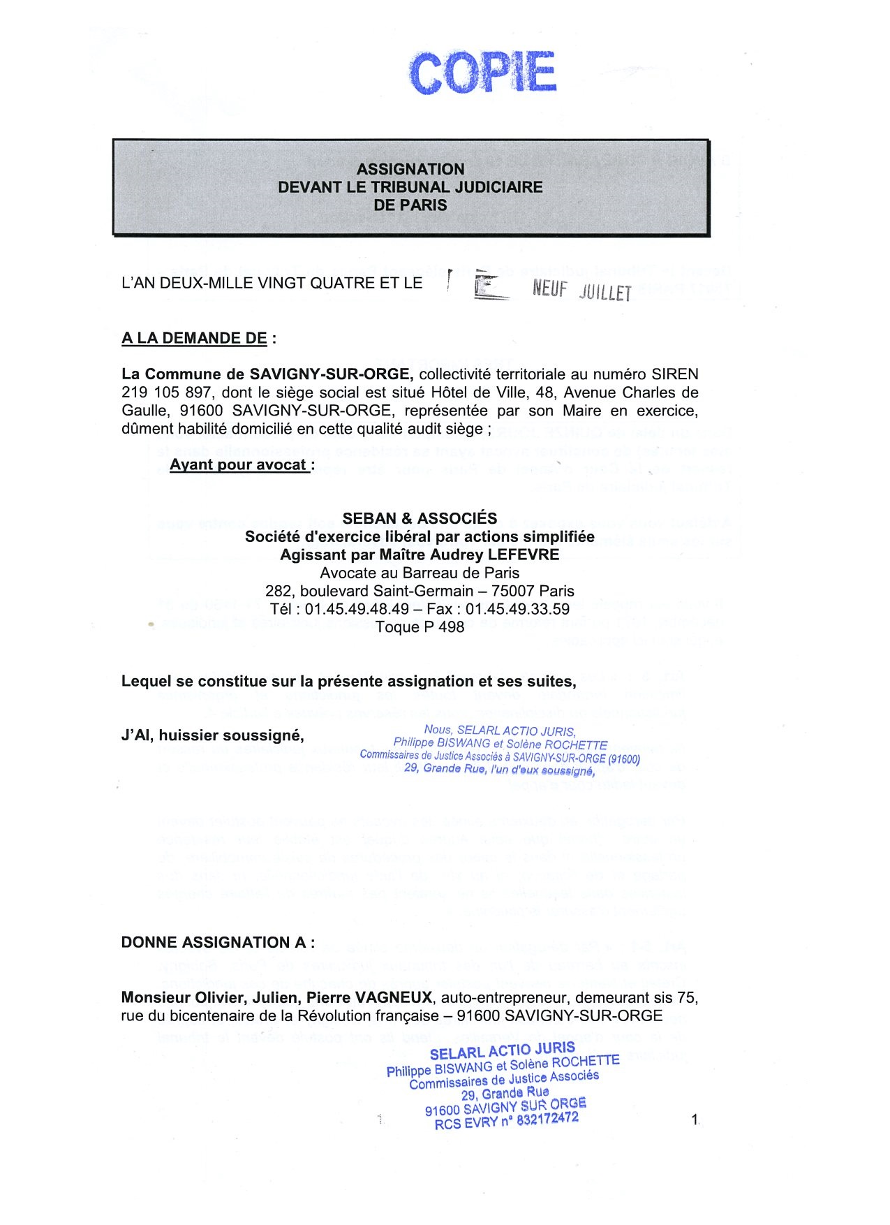 Déjà parce que je trouve assez limite le message envoyé par TEILLET qui est de m’assigner le 9 juillet pour le 15 octobre, alors que nous avons reçu le 4 juillet, un avis d’audience de sa part pour le 2 septembre.