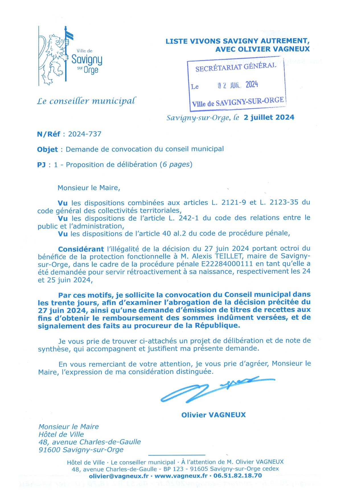Pour le reste, il devrait y avoir un conseil municipal extraordinaire dans les quinze jours, car le maire refuse de respecter des délais de rigueur.