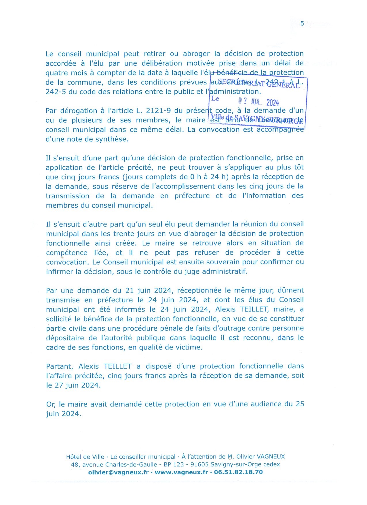 Et là, ils nous font une « Sandra ALVES », c’est-à-dire que je leur adresse une demande dite CGCT (code général des collectivités territoriales),
