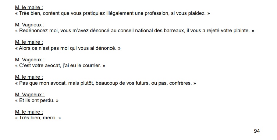 Mais en plus, il défend en tant que personne privée, exactement comme la Commune, dans les mêmes termes, à une date où seul le maire pouvait avoir accès au mémoire de la Commune, et donc le copier/coller, puisque ce mémoire ne sera transmis à sa personne privée que le lendemain.