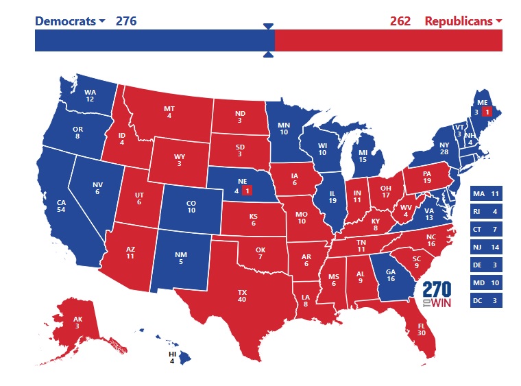 Bilan : TRUMP réduit fortement l’écart et peut finir par l’emporter s’il ne perd pas d’autre état et prend la Géorgie.