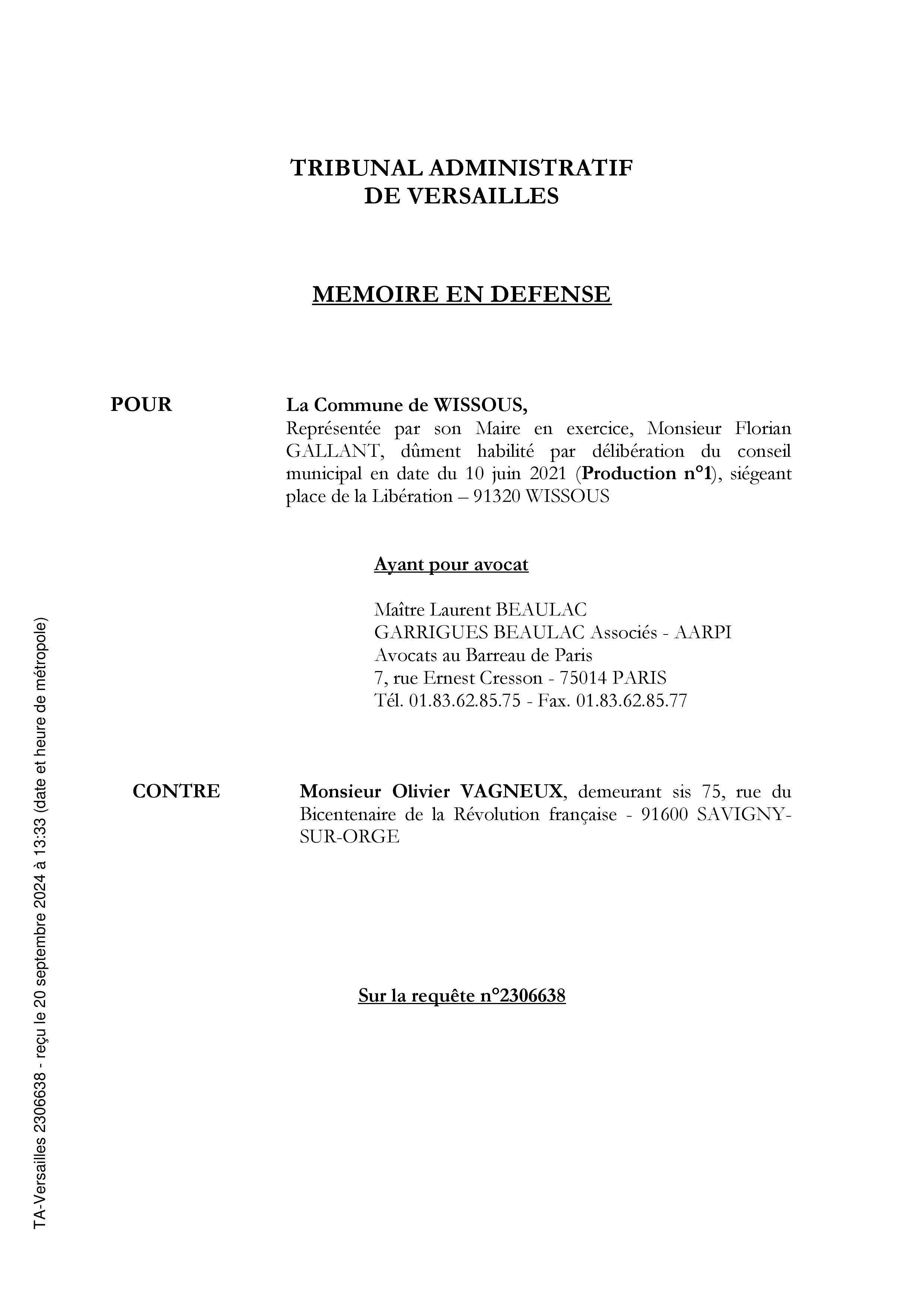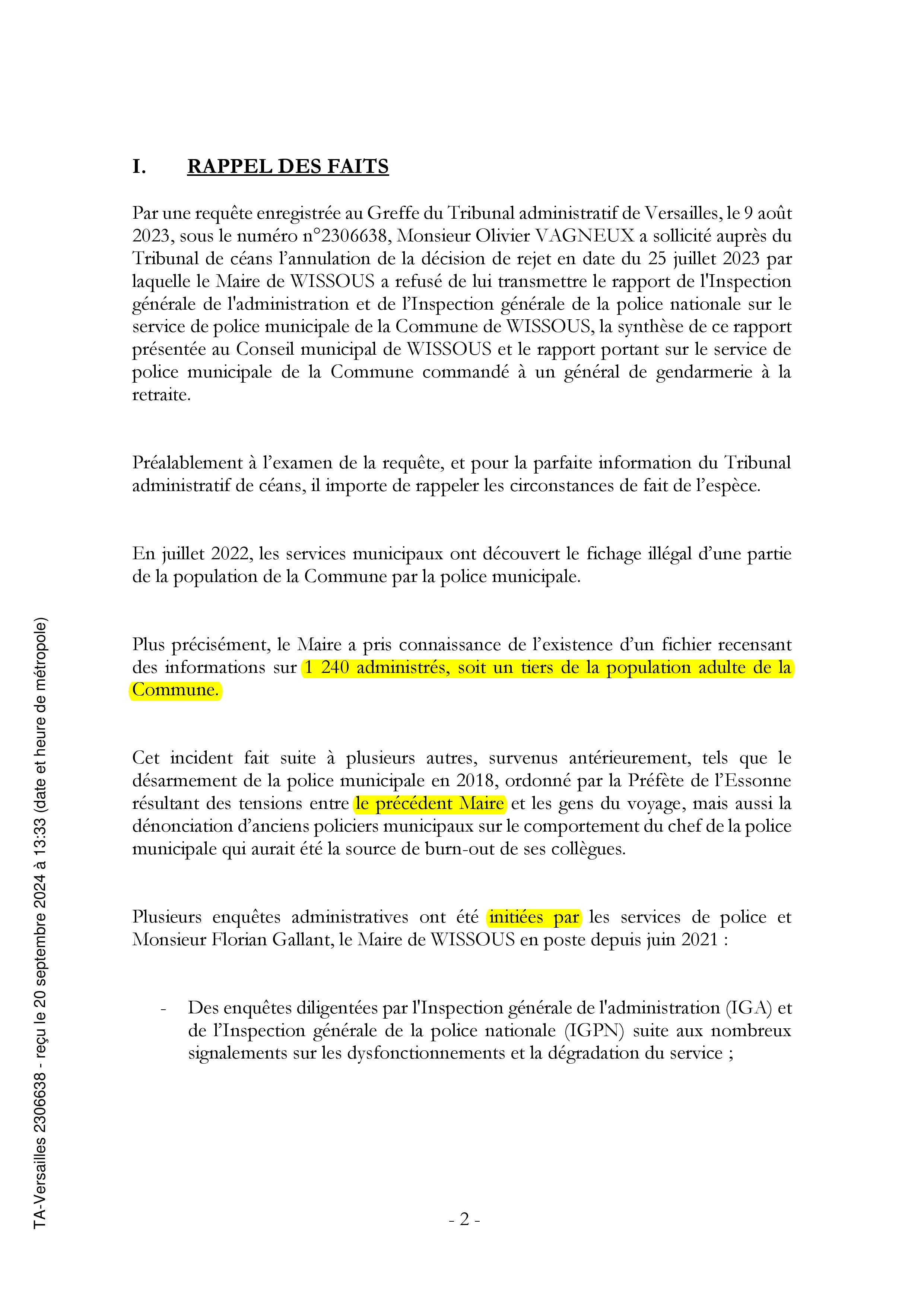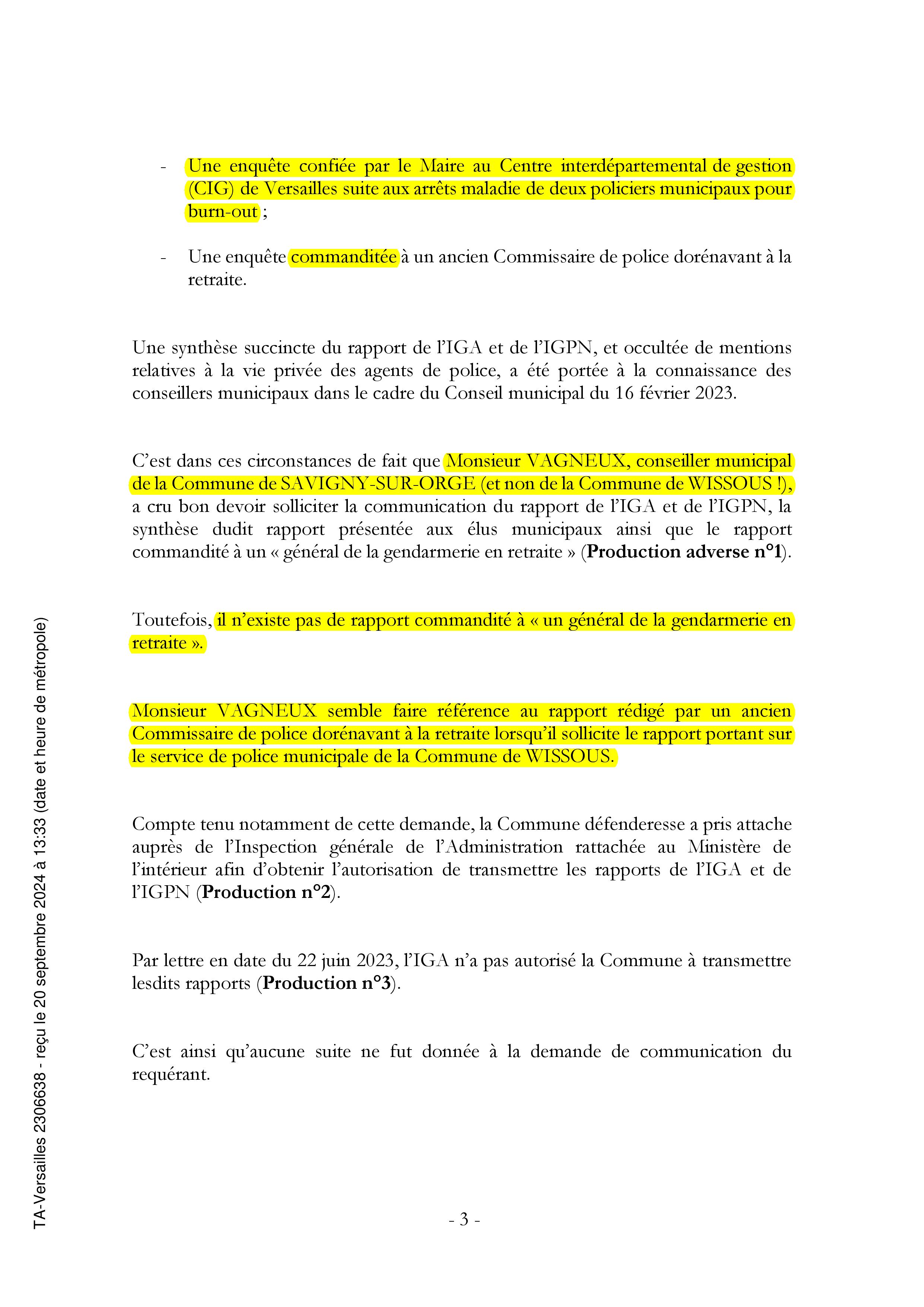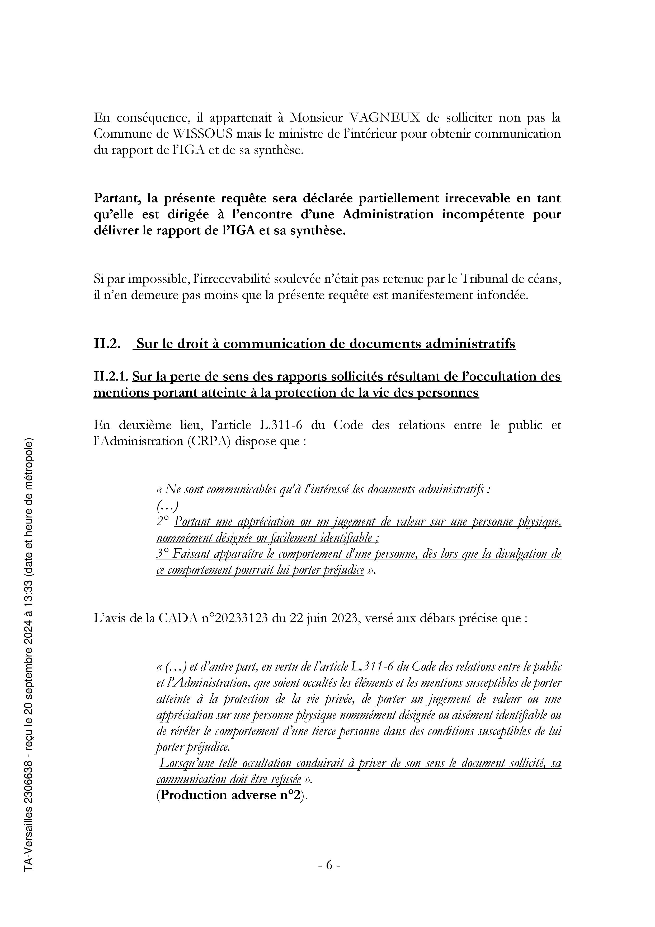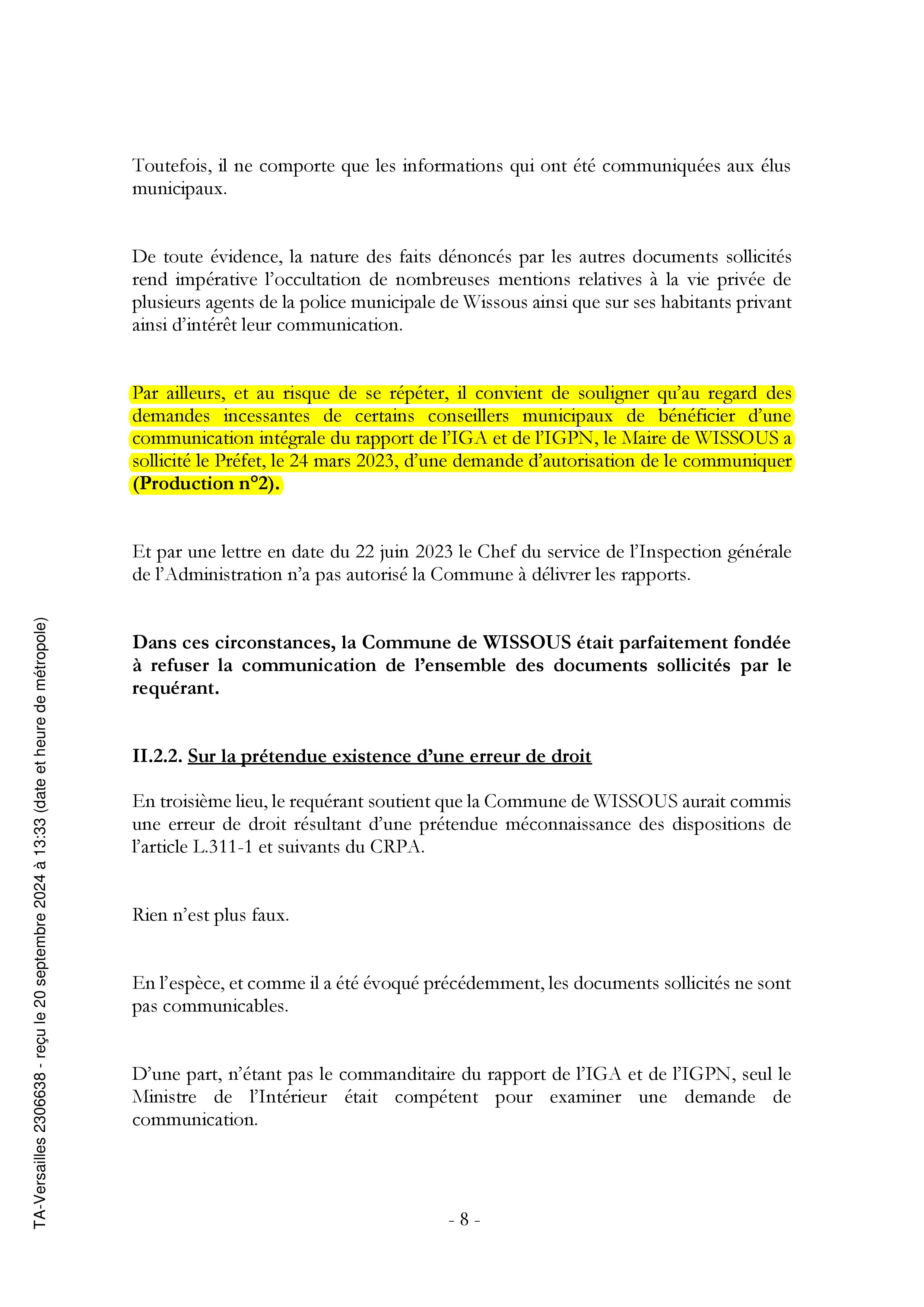 Ici, le maire de Wissous me dit : les documents que vous me demandez appartiennent au Ministère de l’Intérieur, donc il faut aller lui demander à lui.
