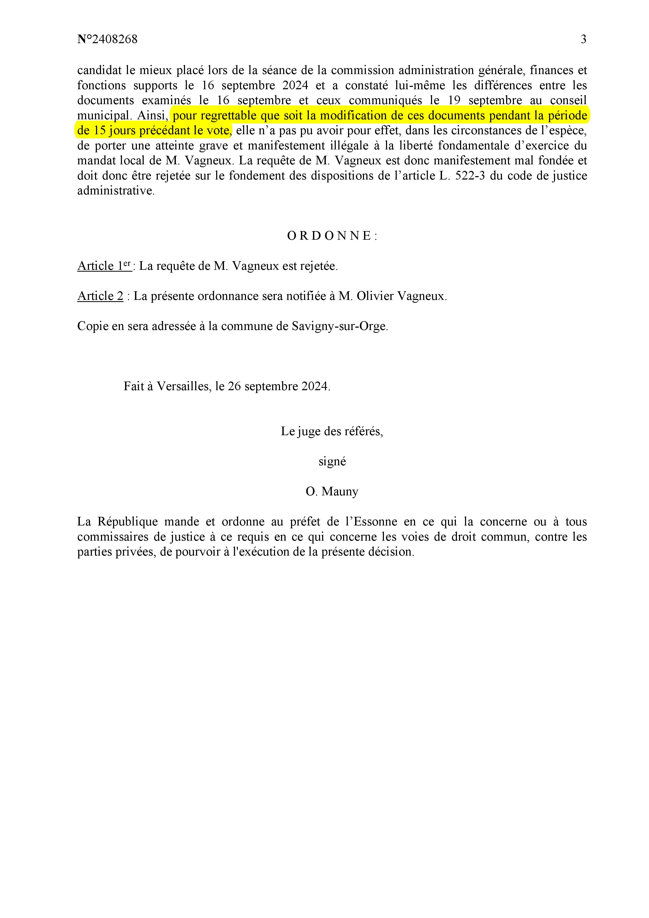 Je pense que l’ordonnance du juge des référés qui suit, obtenue par votre serviteur, n’y est pas pour rien.