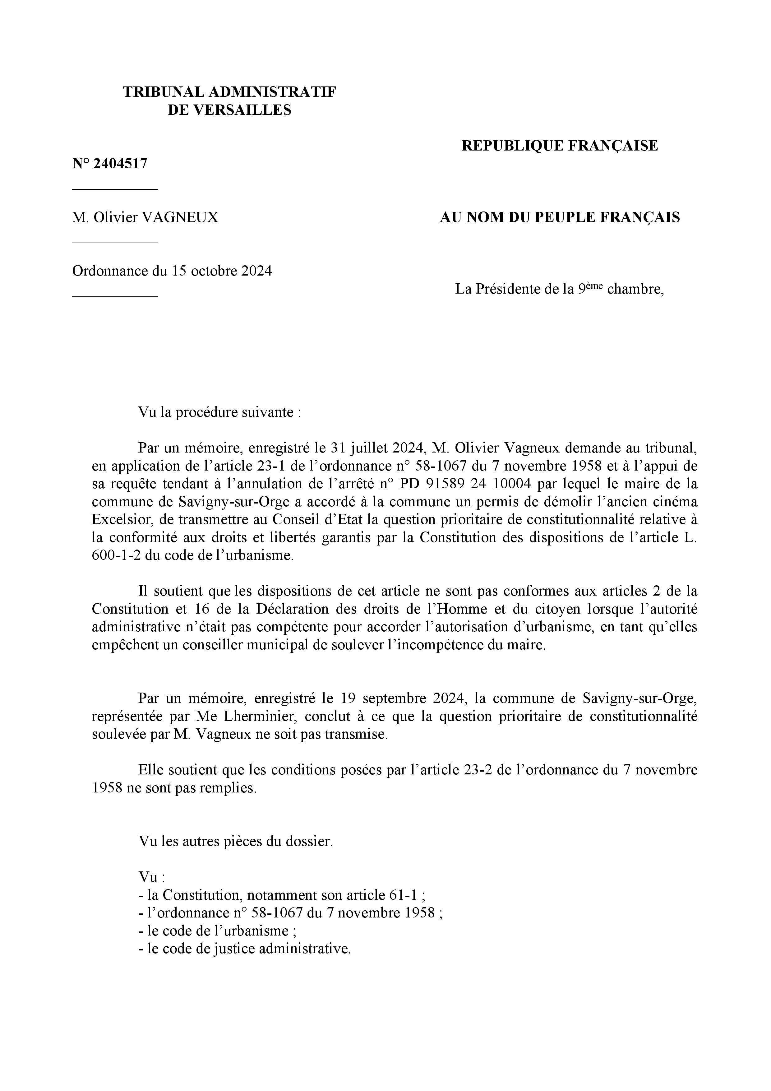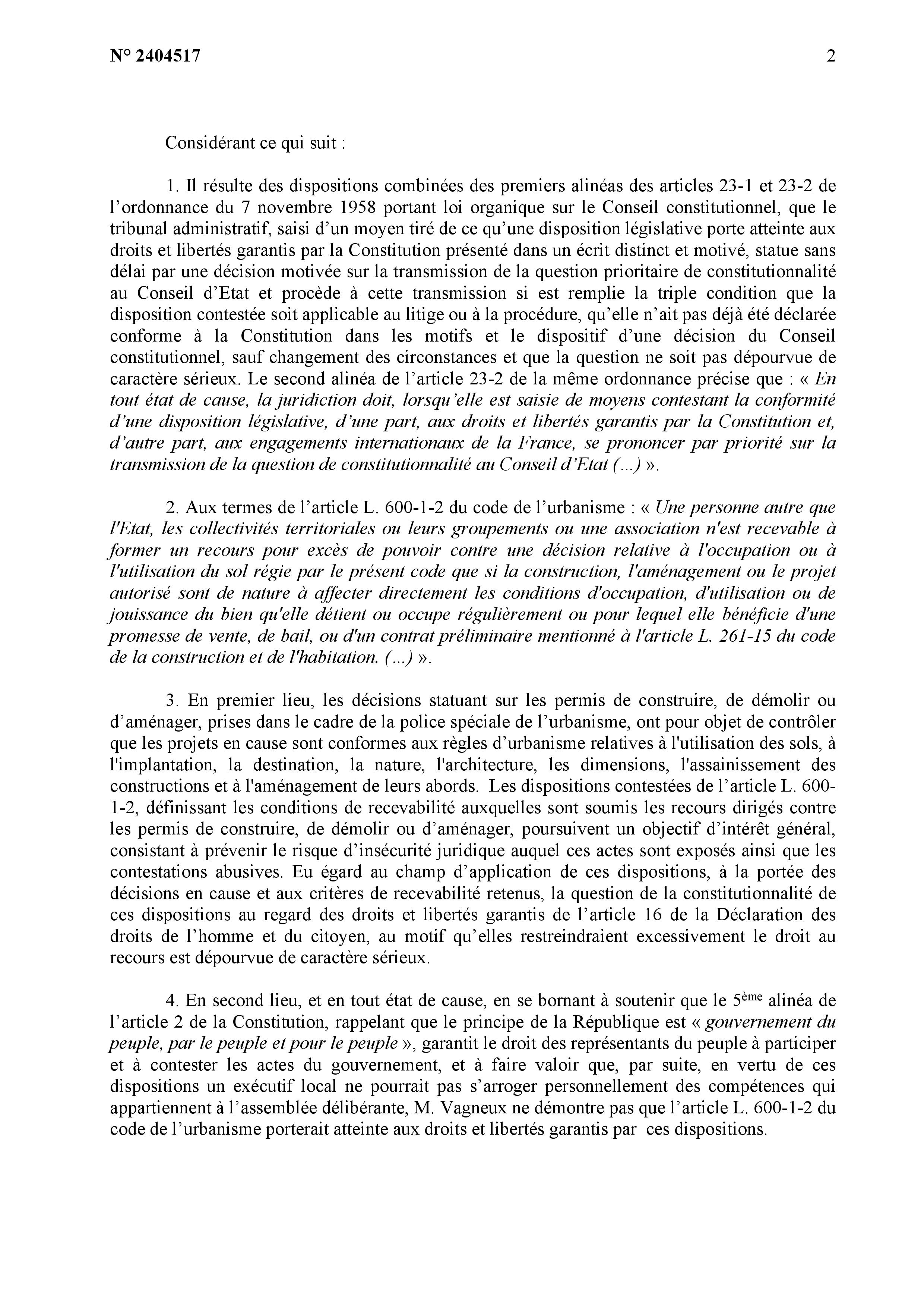 De manière assez décevante, le Tribunal a fait application du même raisonnement qu’avait été celui du Conseil constitutionnel, saisi de la même question, pour l’article L. 600-1-1 du code de l’urbanisme…