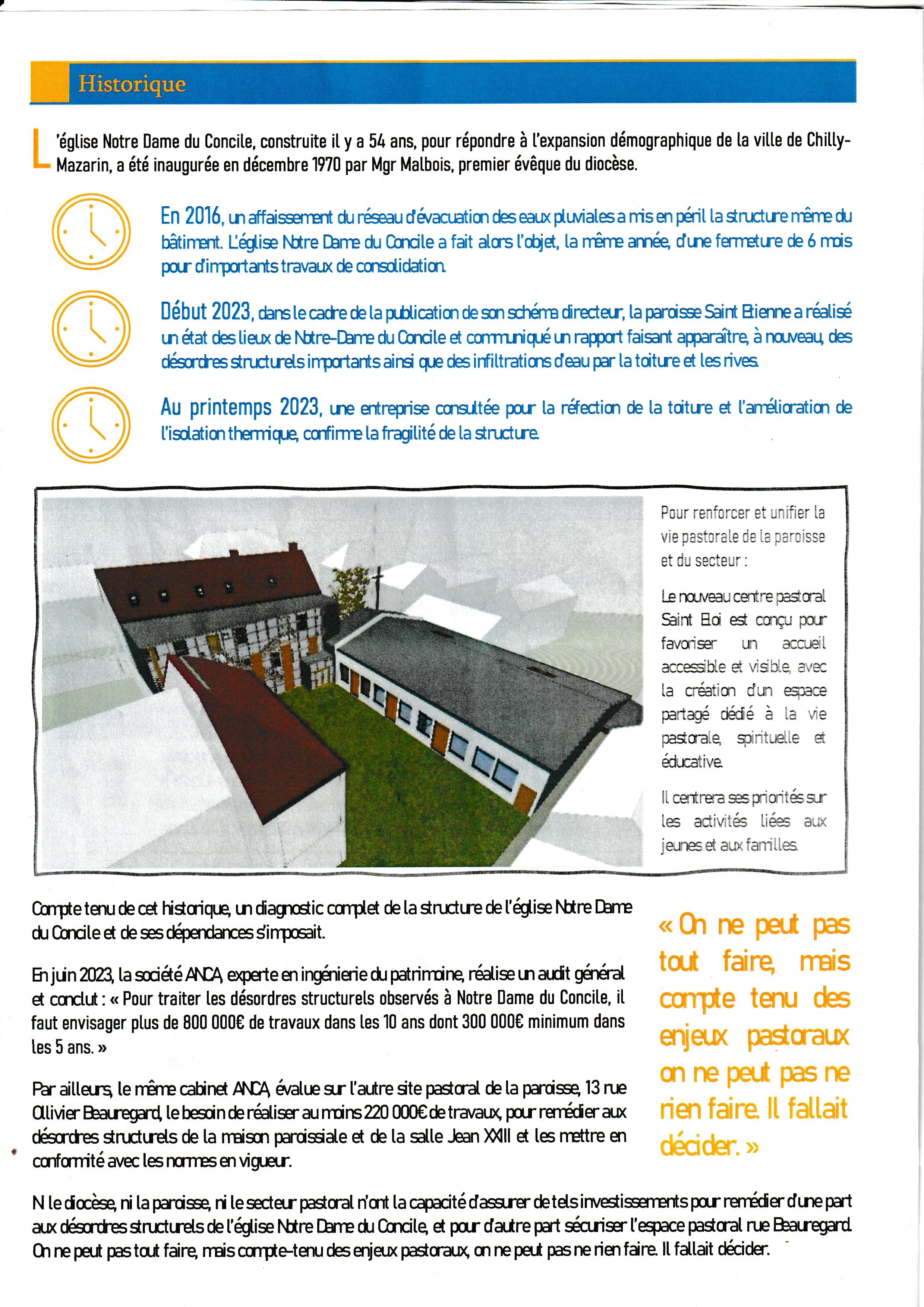 Mais que l’évêque débarque en visite pastorale le premier dimanche de décembre 2024, en annonçant : elle est trop dangereuse, et j’ai un audit qui le prouve, mais je ne vous le donne pas. Je dois la fermer, la détruire et je vais reconstruire un pôle jeunes à la place, est un peu louche.
