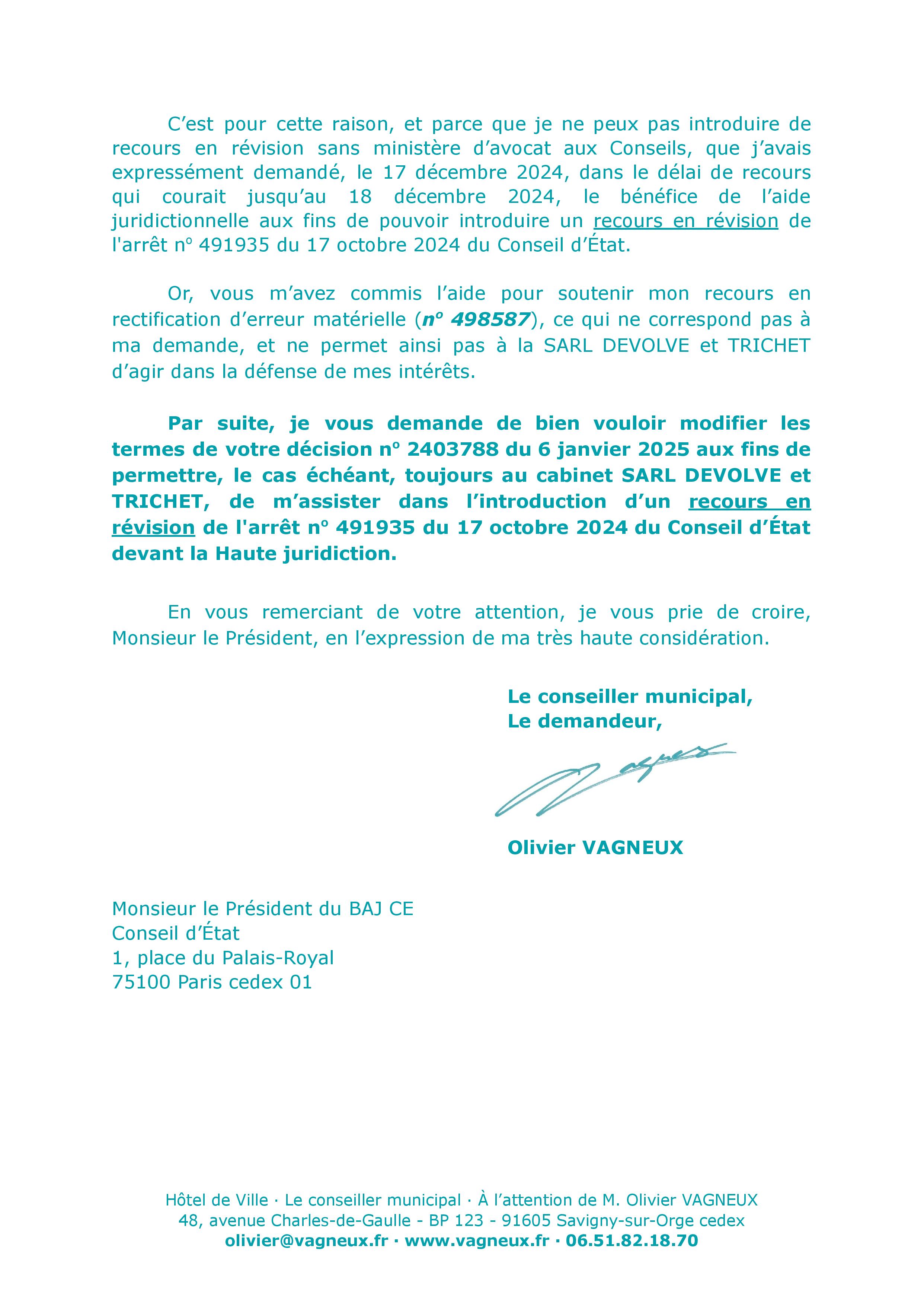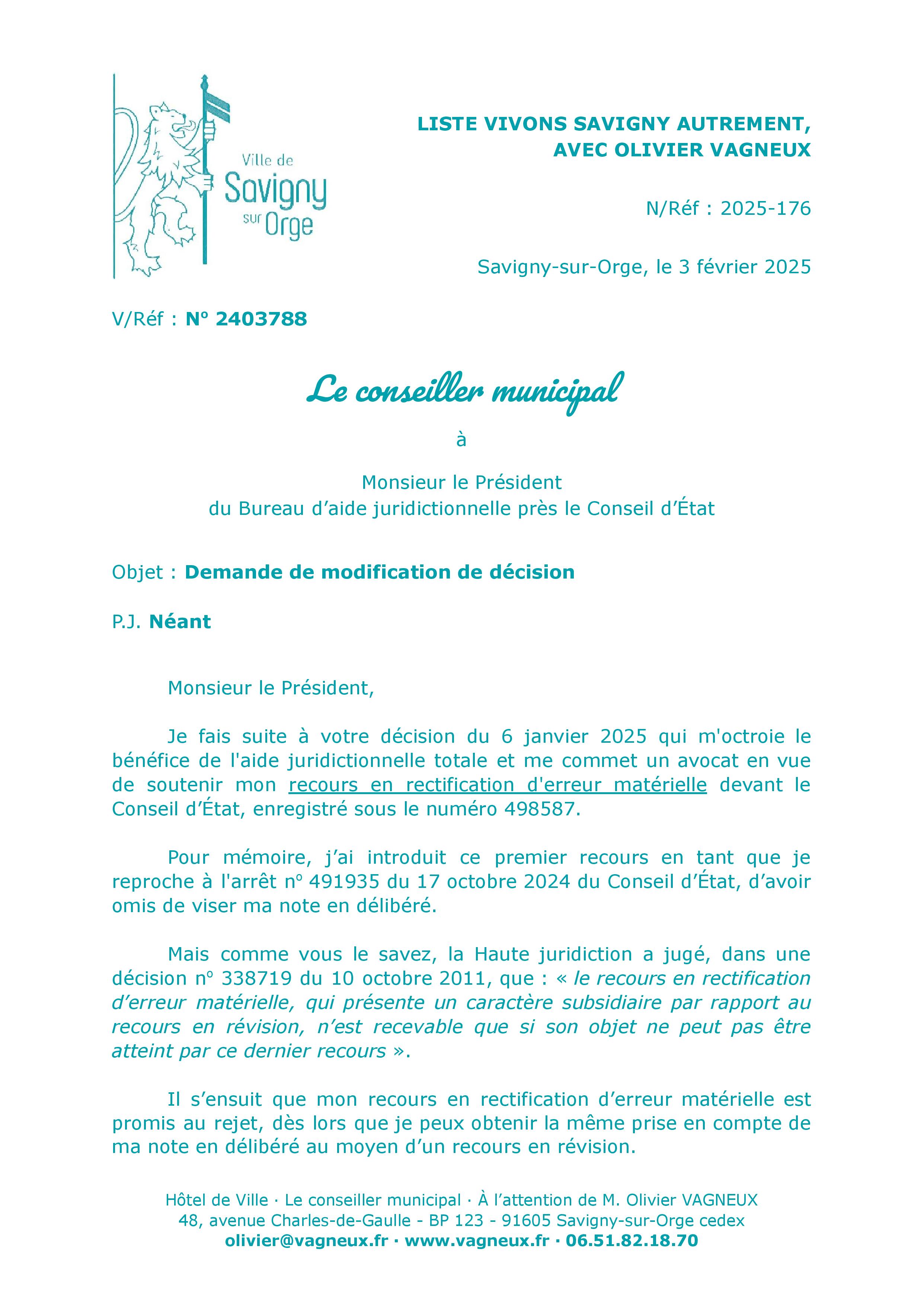 J’avais annoncé, dans un précédent article, avoir obtenu une aide juridictionnelle totale aux fins de demander la révision d’un arrêt du Conseil d’État, aux termes duquel la Haute juridiction avait jugé qu’il n’y avait pas eu de fraude dans l’élection de deux adjoints au maire de Savigny.