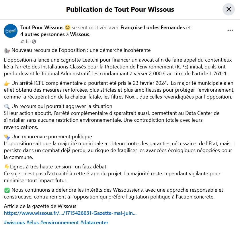 pendant que le maire de Wissous est en train de modifier son PLU pour permettre l’installation complète du datacenter !