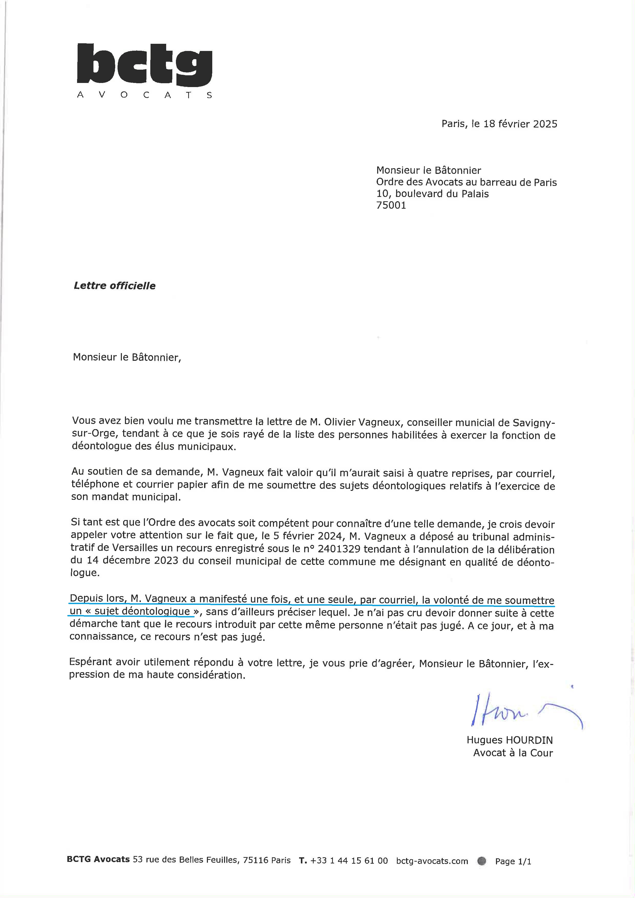 Je le demande au bâtonnier de Paris, par le biais d’une plainte déontologique, et là, HOURDIN, qui ne parle plus à ALVES, mais s’adresse à un autre niveau d’autorité et de compétences, est contraint d’avouer piteusement que je l’ai bien sollicité ; et qu’il m’a envoyé me faire foutre, parce que ma demande n’était pas assez précise pour lui.