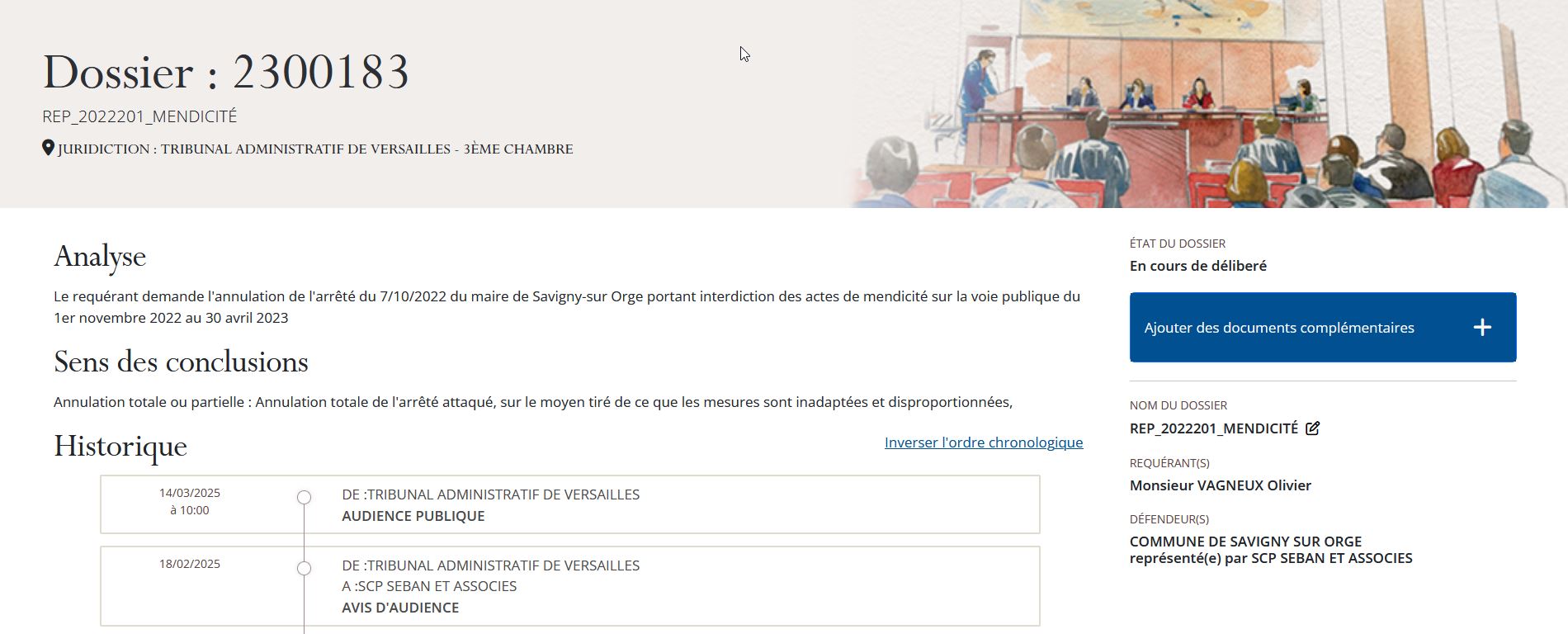 Mendicité, qui à ce jour, n’est pas encore illégale, ni délictuelle, d’où que je le fasse annuler !