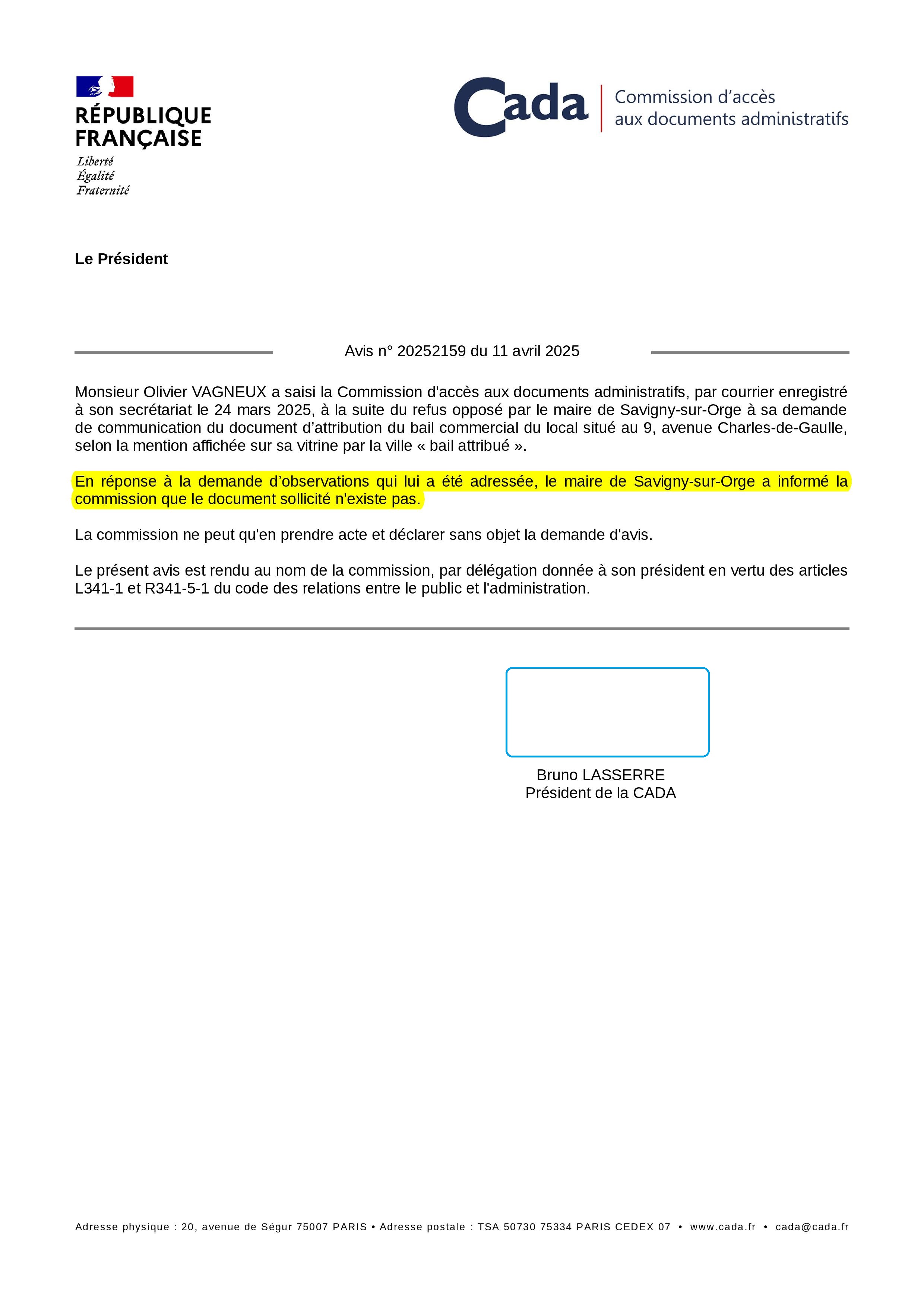 Et là, il doit piteusement avouer à la Commission d’accès aux documents administratifs, qu’il n’a en fait jamais attribué de bail, malgré ce qu’il a affiché…