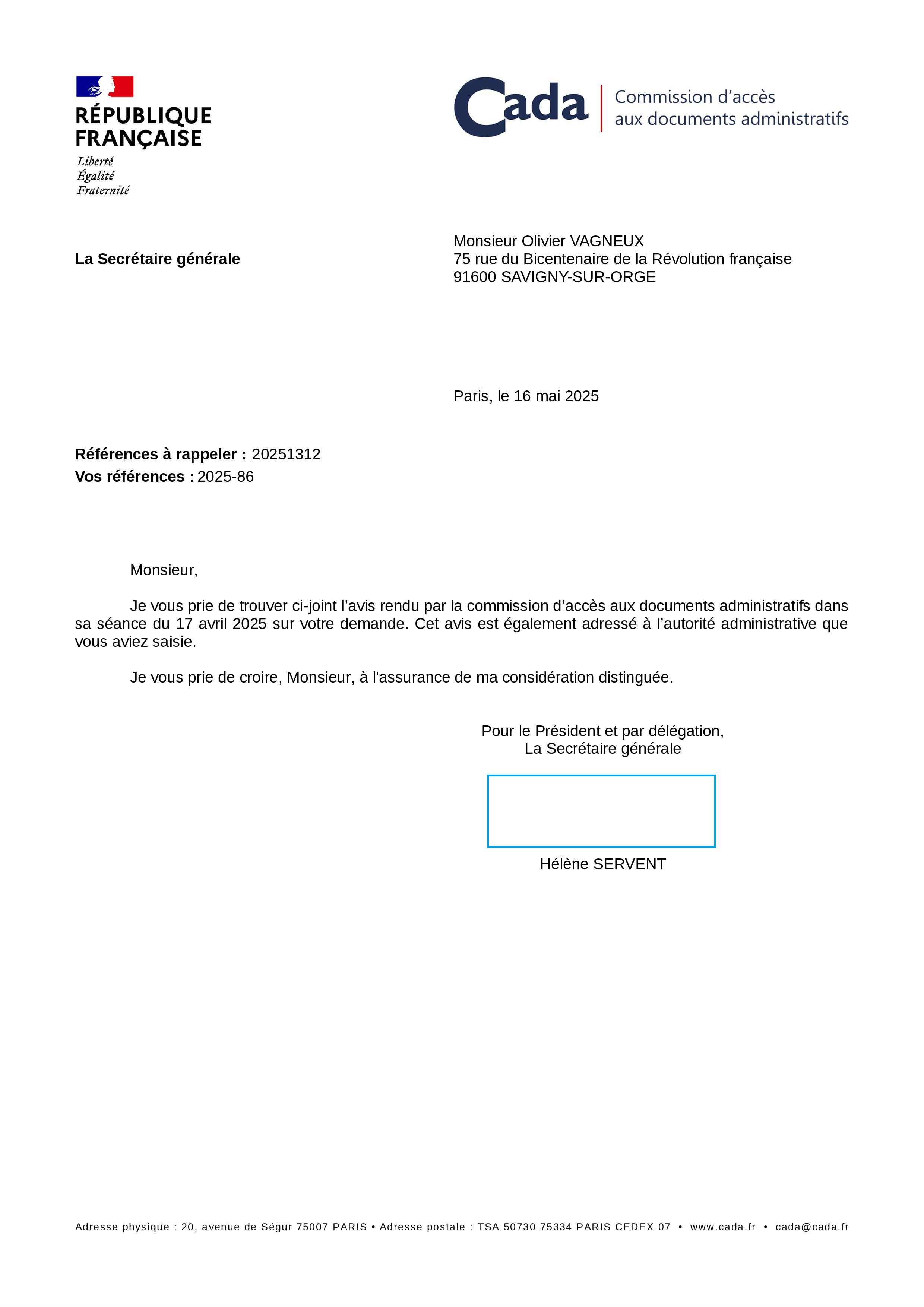 Embauche népotique de Caroline CALCAVINO par Alexis TEILLET à la Mairie de Savigny-sur-Orge : Mort de rire ! La CADA n’est pas tombée dans le piège d’Alexis TEILLET