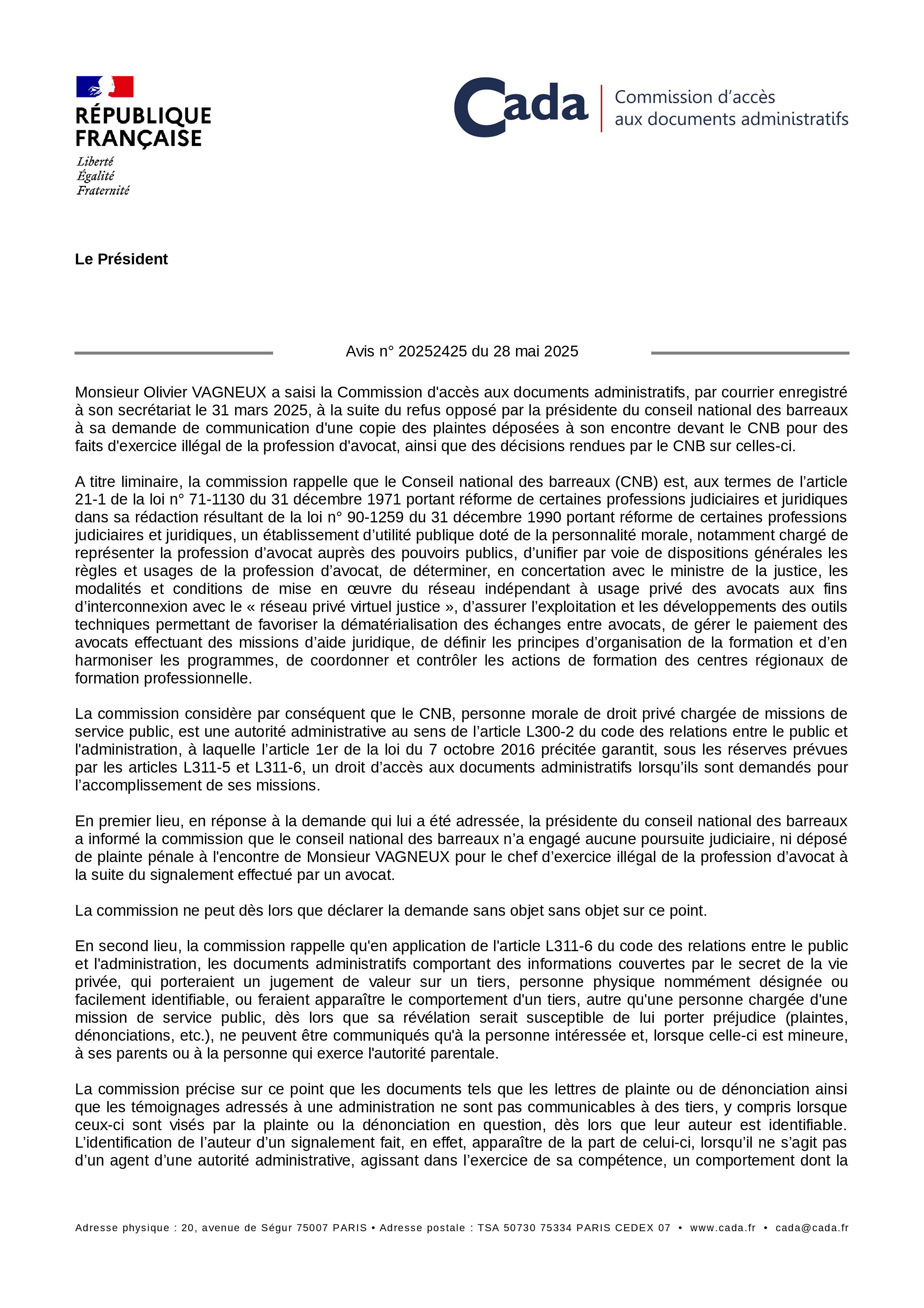 La saisie n’en était pas moins inutile pour vérifier que le Conseil national des barreaux (CNB) n’a engagé, à date, aucune poursuite judiciaire, ni déposé de plainte pénale à mon encontre pour le chef d’exercice illégal de la profession d’avocat.