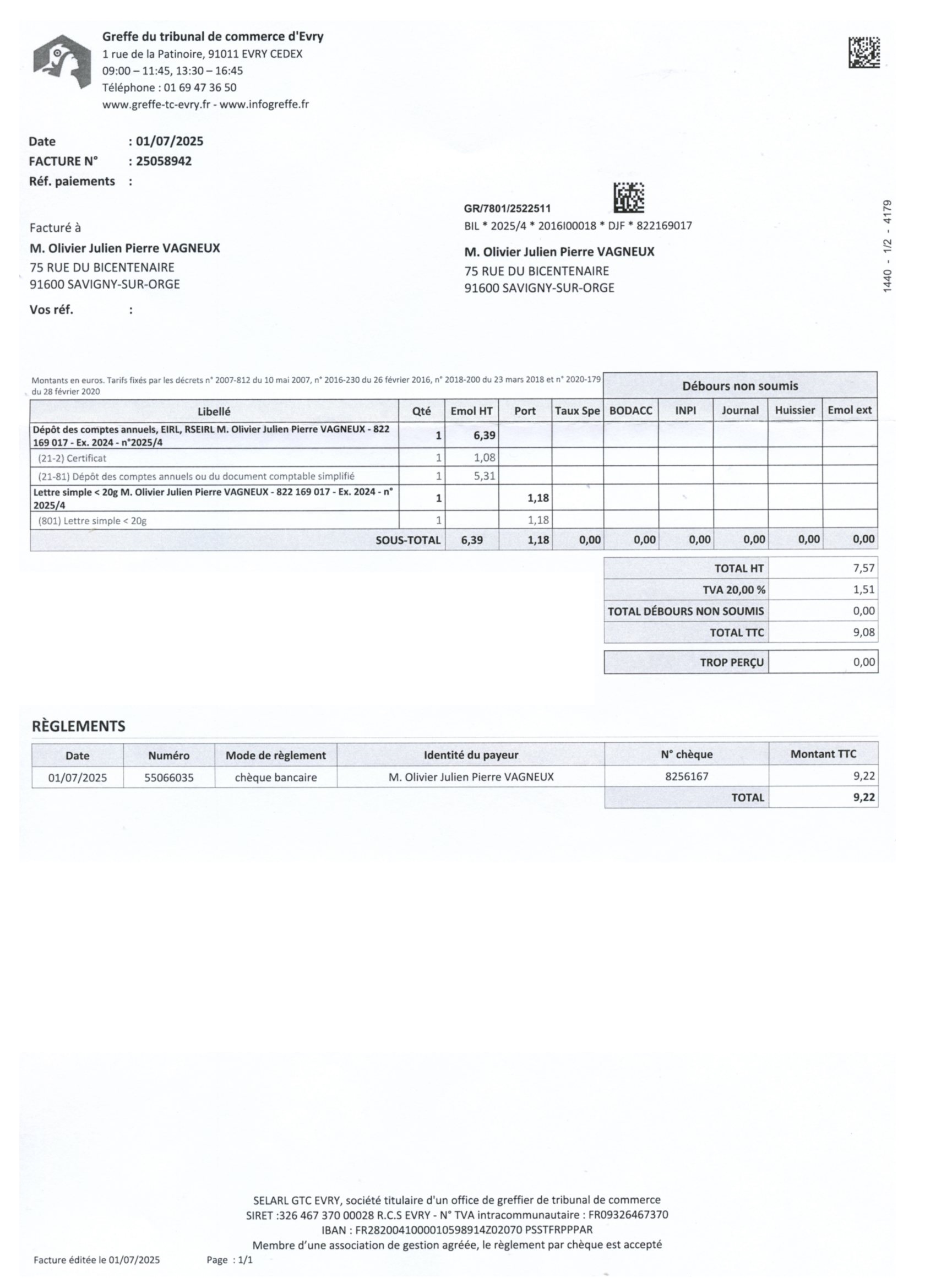 À relever sinon que mes comptes ont été validés, puisque j’ai le récépissé de dépôt !