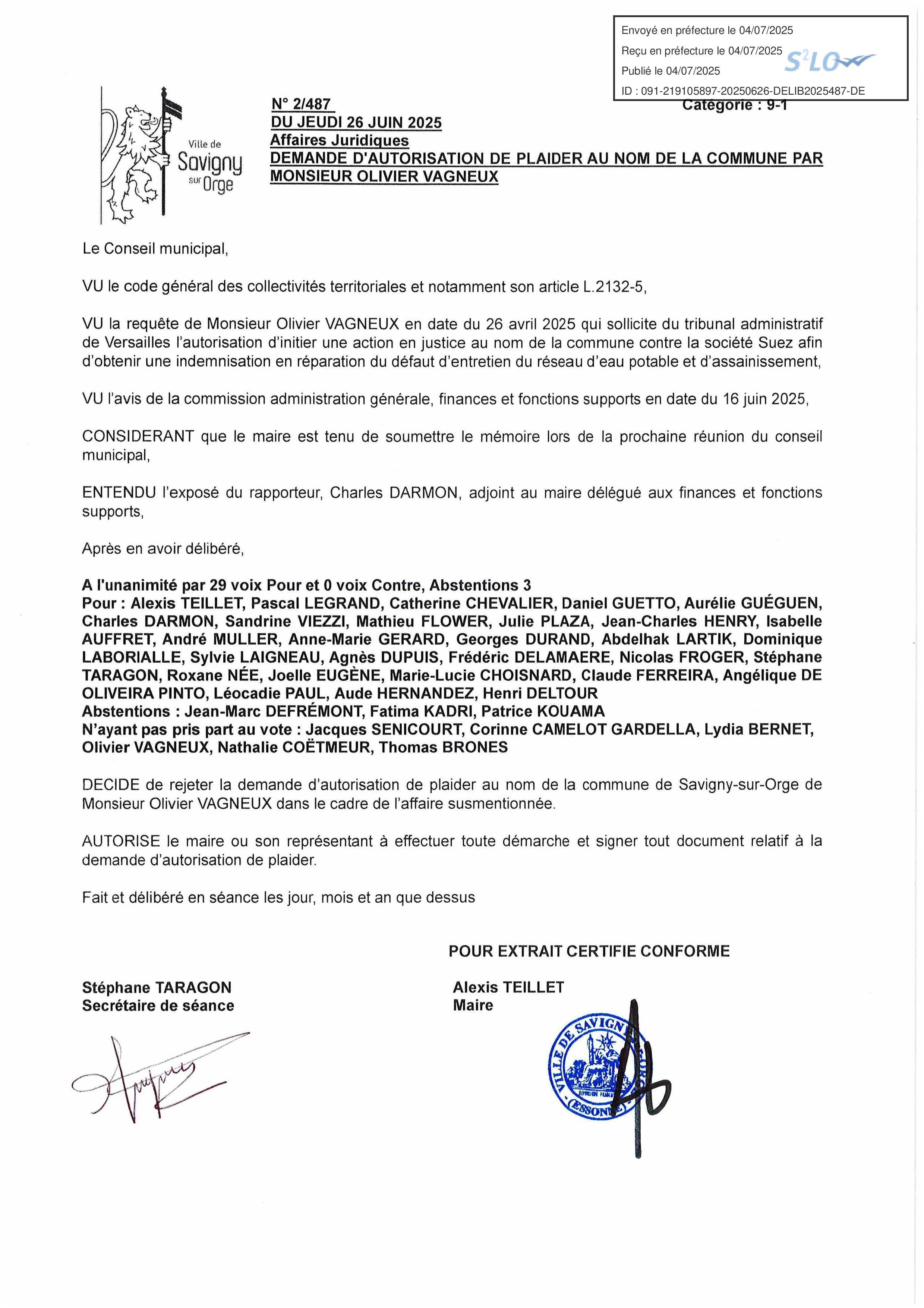 Et donc, je me ramène à la mairie, et je dis à TEILLET : Suez n’a pas fait le job, parce qu’on perd 14 % de l’eau qui est injecté dans le réseau et puis qu’ils font 39 % du renouvellement attendu. Zyva, on leur fait un procès.