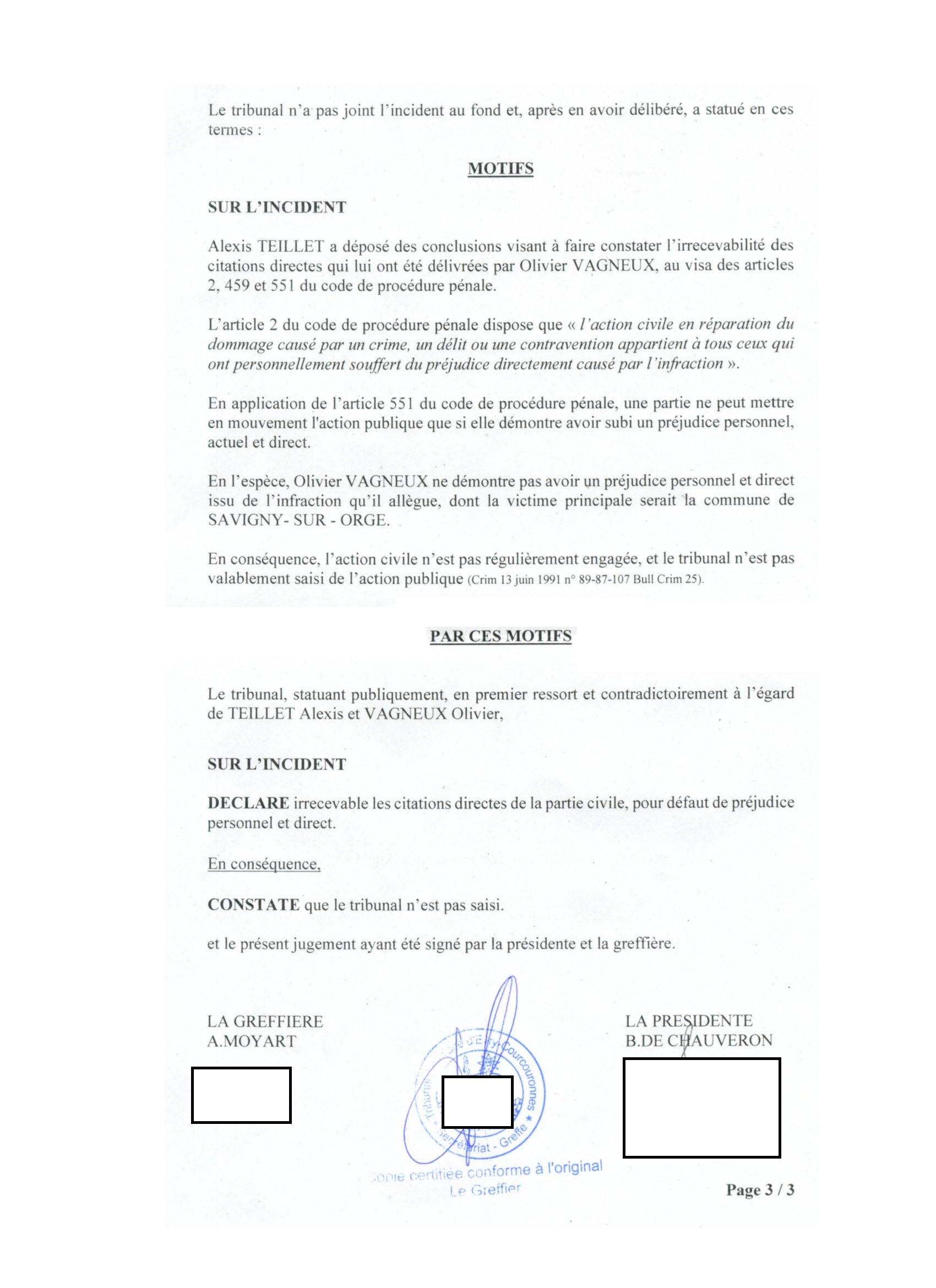 Oui, mais uniquement si je le fais au titre du droit à l’information et de la liberté de la presse, pour partager un renseignement d’intérêt public : le maire de Savigny-sur-Orge a déjà fait l’objet d’une condamnation pénale.
