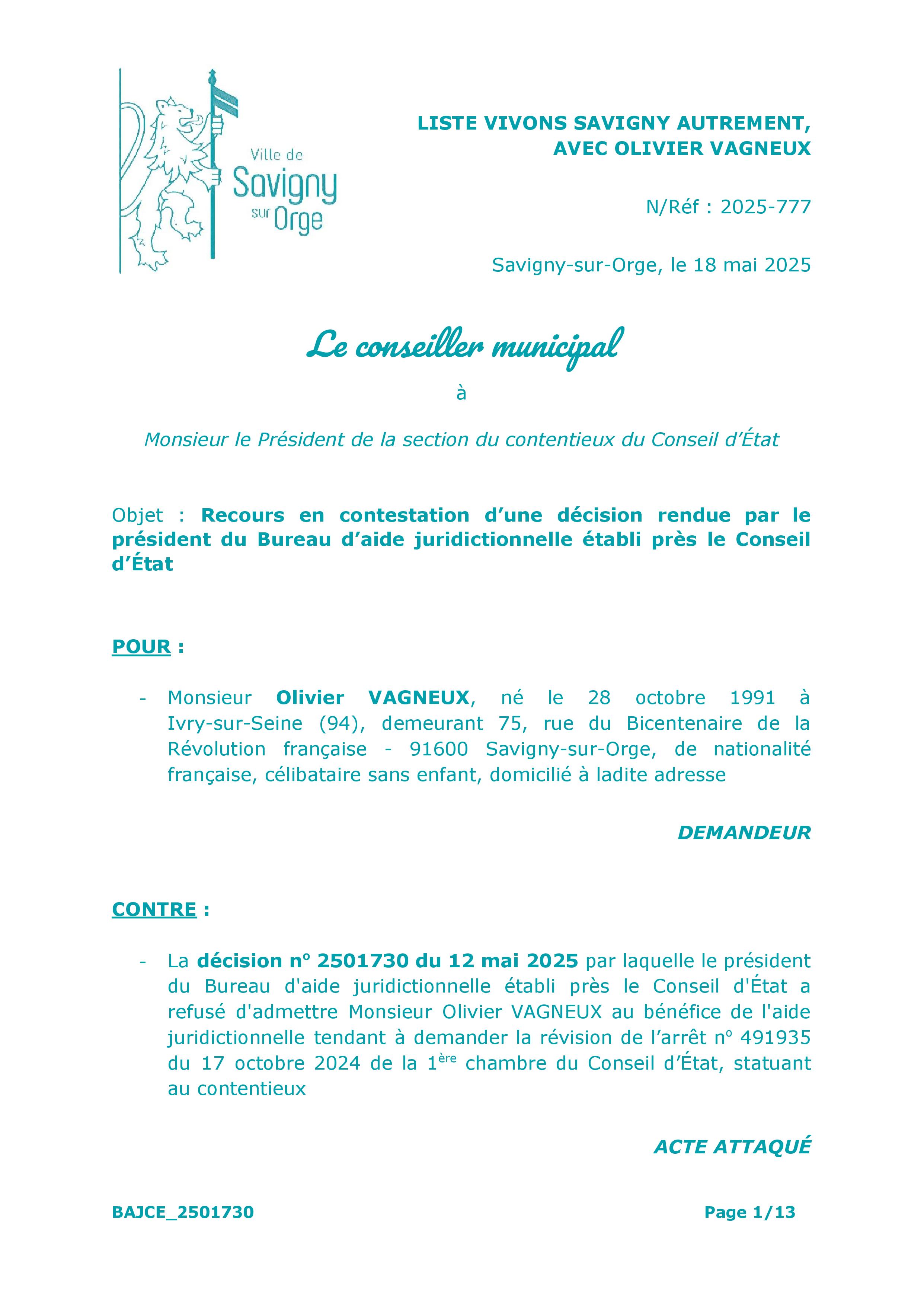 Avec cette affaire, je suis en train de graver la réputation de Savigny dans le marbre de la jurisprudence administrative :
