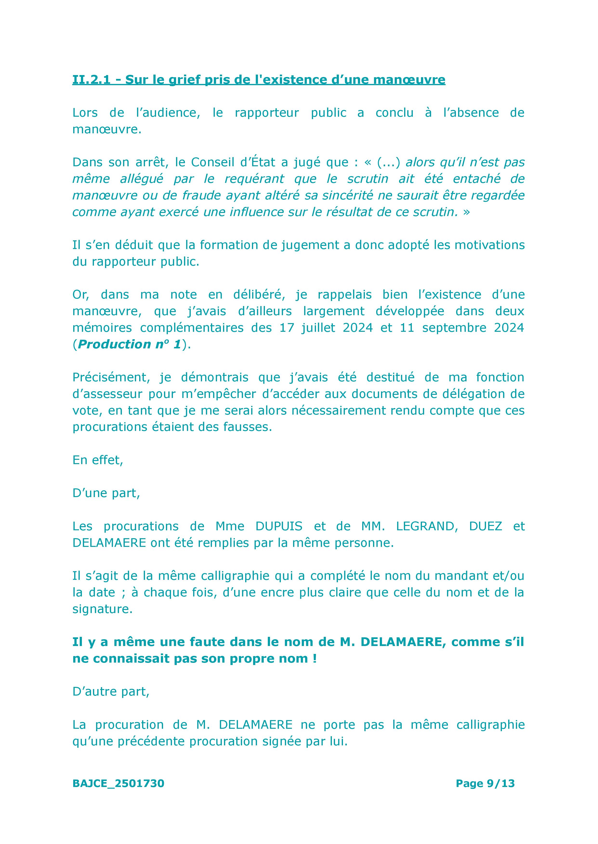– Les procurations des élus absents, visiblement fournies en blanc au début du mandat puis complétées par l’administration en fonction des besoins (illégal), qui se retrouvent du coup toutes écrites de la même main, avec en plus une faute dans le nom de l’un des mandants (Frédéric DELAMAERE orthographié DELAMERE comme s’il ne savait pas écrire son nom) ;