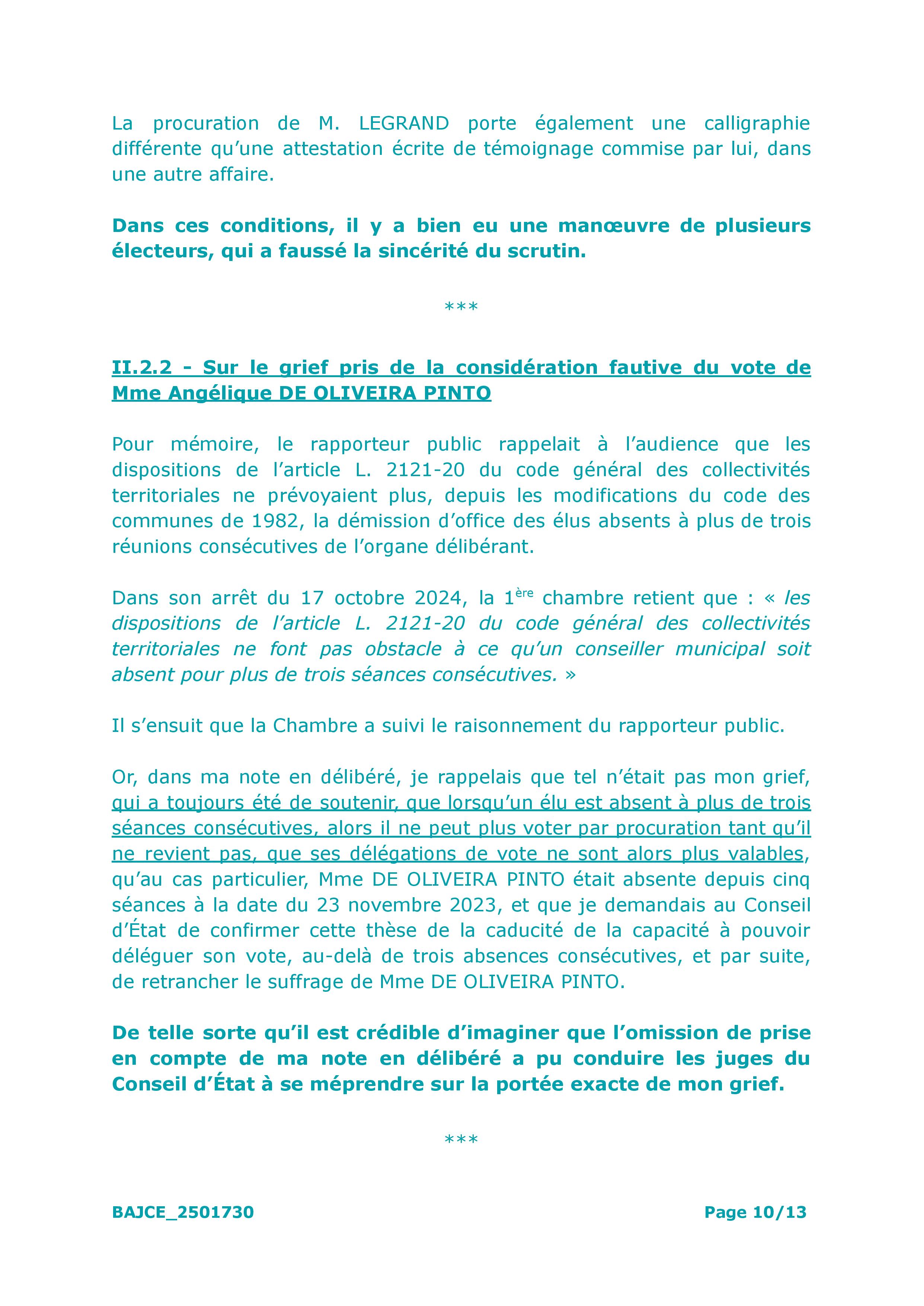 – Et l’absence perpétuelle de la deuxième de liste TEILLET, j’ai nommé Angélique DE OLIVEIRA PINTO, qui n’en a pas grand chose à faire de Savigny, mais qui va quand même donner pouvoir, parce qu’il ne faudrait pas que manque une seule voix à cette majorité de fragiles.